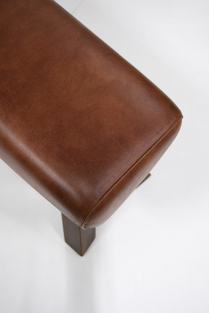 En stilren og robust buk i læder, der kombinerer enkelthed og funktionalitet. Den varme, antikbrune læderoverflade giver et elegant vintagelook, mens de solide træben sikrer stabilitet og gør den perfekt til daglig brug. Med sit minimalistiske udtryk og rene linjer passer denne buk ind i mange forskellige indretninger. Dens længde gør den ideel som siddeplads i gangen, på soveværelset eller som et dekorativt møbel i din butik eller café. Et alsidigt og holdbart valg, der bringer både stil og komfort ind i enhver indretning.