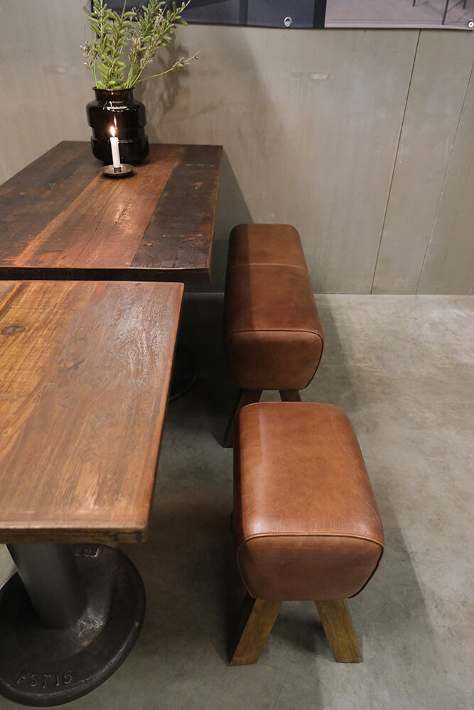 En supersmart og lækker lille plint som er utrolig populær blandt vores kunder. Den er fremstillet i antik brunt læder og har 4 kraftige træben. En solid skammel med vintage look. Du kan anvende taburetten mange steder i din bolig eller business. Perfekt i tøjbutikkens prøverum, et anderledes lille sengebord, i entreen - så du kan sidde ned og tage dit fodtøj på. Mulighederne er mange og denne lille plint vil med garanti klæde din boligindretning. Sædet er polstret hvilket giver en god siddekomfort og er perfekt til den lille ekstra siddeplads.