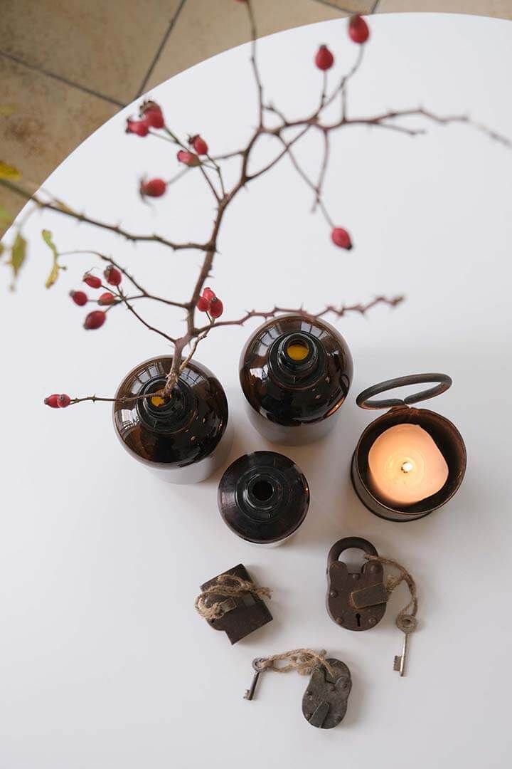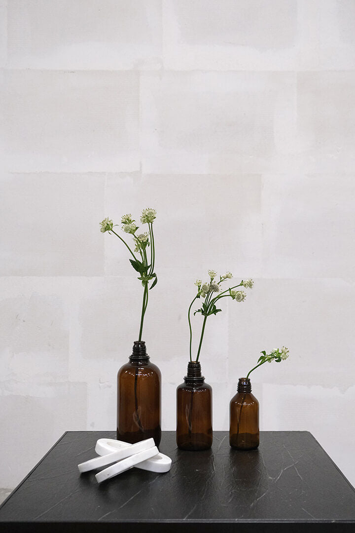 Små, iøjnefaldende, originale industriglasflasker i kraftigt brunt glas. Tilføj indretningen en ekstra lille detalje med disse små, industrielle glasflasker. Cemmi flaskerne har tidligere været brugt til opbevaring af forskellige kemikalier, men vi foretrækker en enkelt stilk eller gren. Cemmi flaskerne fås i flere forskellige størrelser som med fordel kan kombineres for et mere personligt look.
