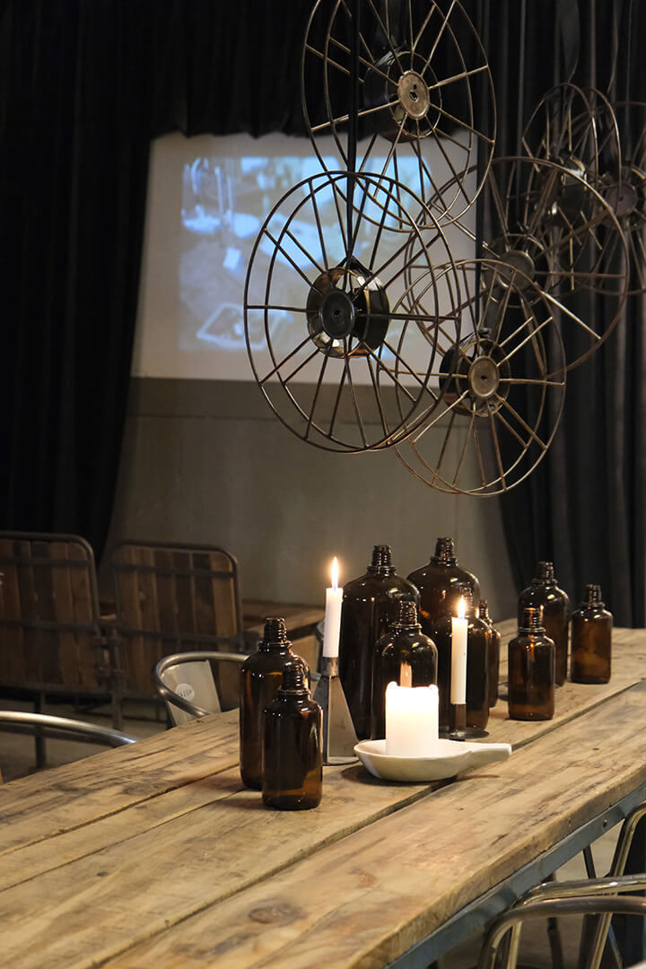 Meget små, iøjnefaldende, originale industriglasflasker i kraftigt brunt glas. Tilføj indretningen en ekstra lille detalje med disse små, industrielle glasflasker. Cemmi flaskerne har tidligere været brugt til opbevaring af forskellige kemikalier, men vi foretrækker en enkelt stilk eller gren. Cemmi flaskerne fås i flere forskellige størrelser som med fordel kan kombineres for et mere personligt look.