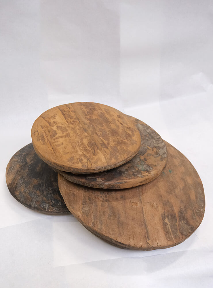 Denne Chapatiplatte i træ har et råt, autentisk look og kan fortælle masser af historier fra sit liv som Chapatiplatte. Platten har nemlig været brugt til at lave Chapatibrød på. Hver platte er forskellig i både størrelse og udtryk, hvilket giver et individuelt præg til dit interiør. Perfekt som en dekorativ base for vaser, lys eller som et fad med masser af personlighed. Med tydelige brugsspor og patina fra det oprindelige håndværk bringer den en ægte vintagefornemmelse ind i ethvert rum. Fra 45 - 53 cm i diameter.
