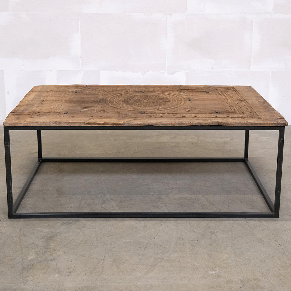 Hvorfor vælge et almindeligt sofabord, når du kan få et med karakter? Dette bord kombinerer industrielt håndværk med rustik autenticitet. Bordpladen, der er lavet af en gammel dør, har bevaret sine smukke detaljer og slidte charme, mens jernstellet tilfører en moderne kant. Et one-of-a-kind møbel til både caféer, loungemiljøer og private hjem, hvor der er plads til personlighed.