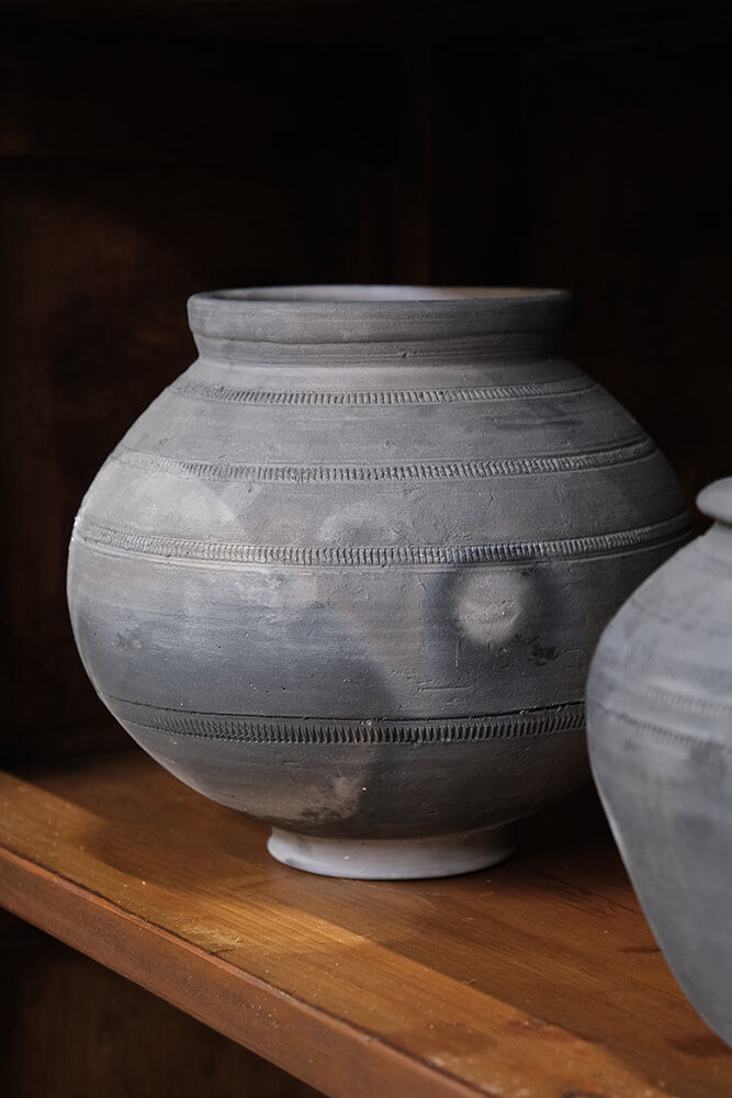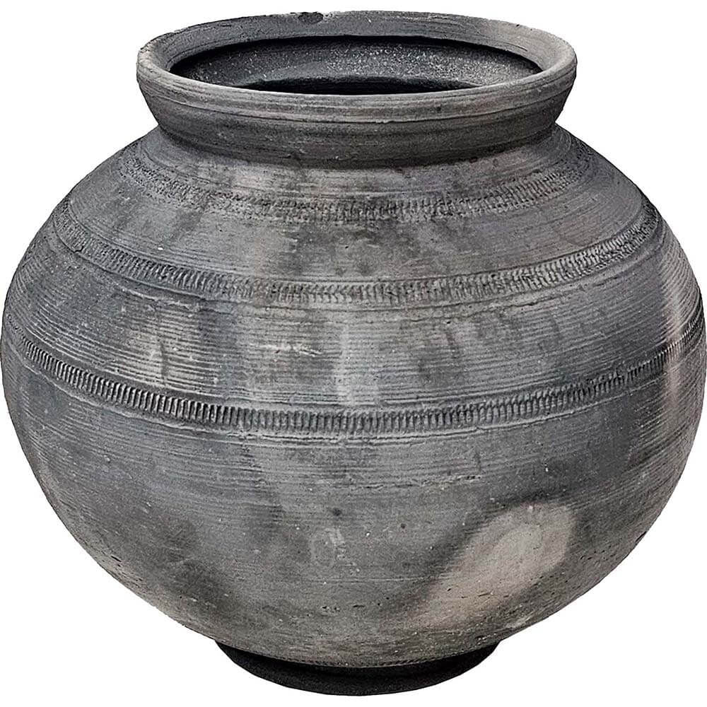 Denne lerkrukke er rund og fyldig med et tidløst design, der kombinerer en glat overflade med fine, håndlavede riller. Den mørke nuance og de naturlige variationer i teksturen tilføjer et autentisk og rustikt udtryk. Krukken er både dekorativ og funktionel, perfekt til at rumme tørrede blomster, grene eller som en stand-alone dekoration, der bringer en organisk og jordnær stemning til ethvert rum. Bruger du krukken til planter anbefaler vi et plastikindlæg, da krukken ikke er vandtæt.