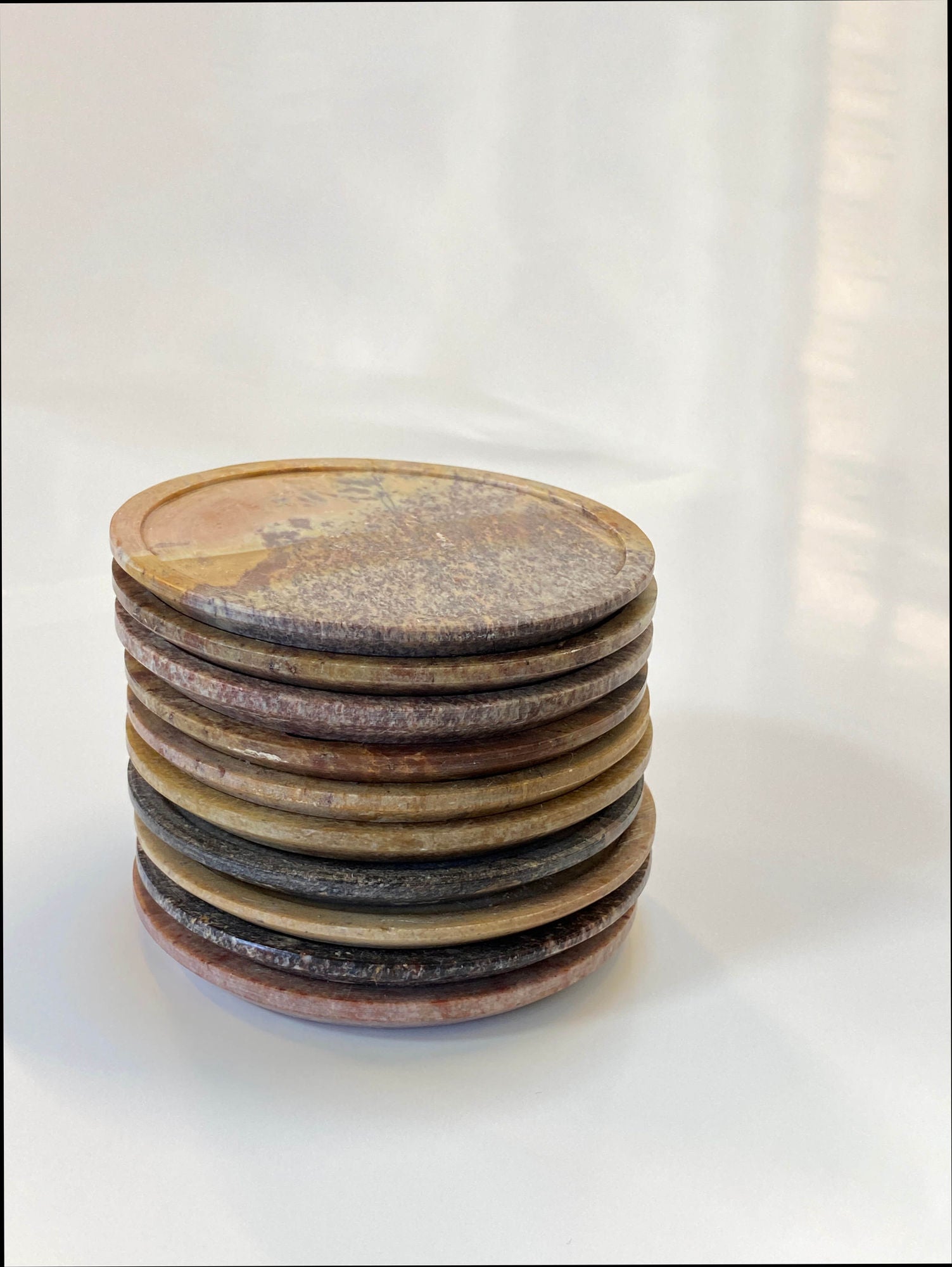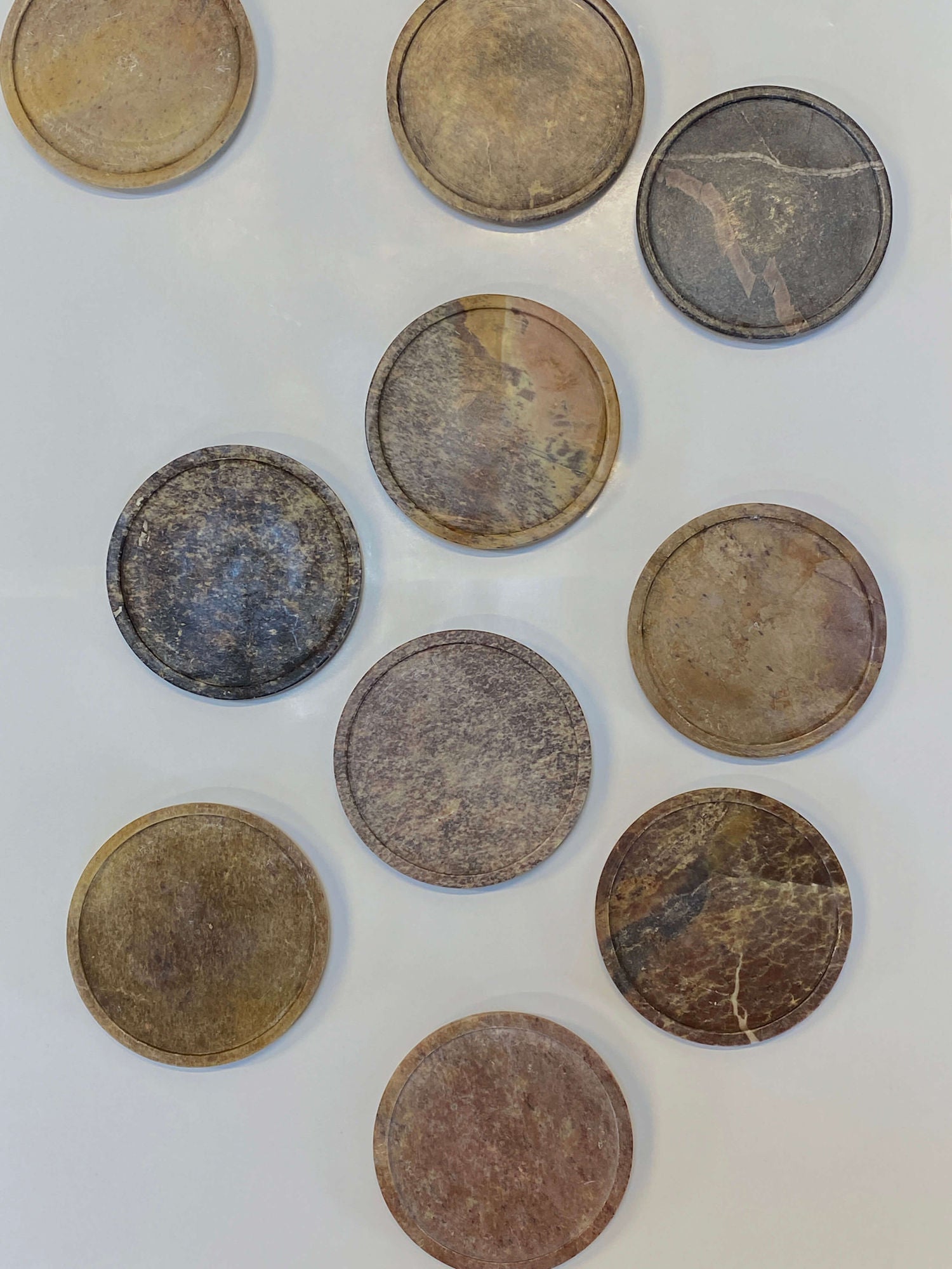 Her får du de fineste små coasters i poleret sten. Brug coasterne som glasbrikker eller stil et bloklys eller dine salt og peberkværne på dem. Glasbrikkerne sælges i en pakke med 10 stk og coasterne kan variere en del i nuancerne. Lige netop på grund af de forskellige farvenuancer, vil coasterne helt sikkert være en skøn tilføjelse til din rustikke borddækning, og bare give et smukt naturligt islæt.
