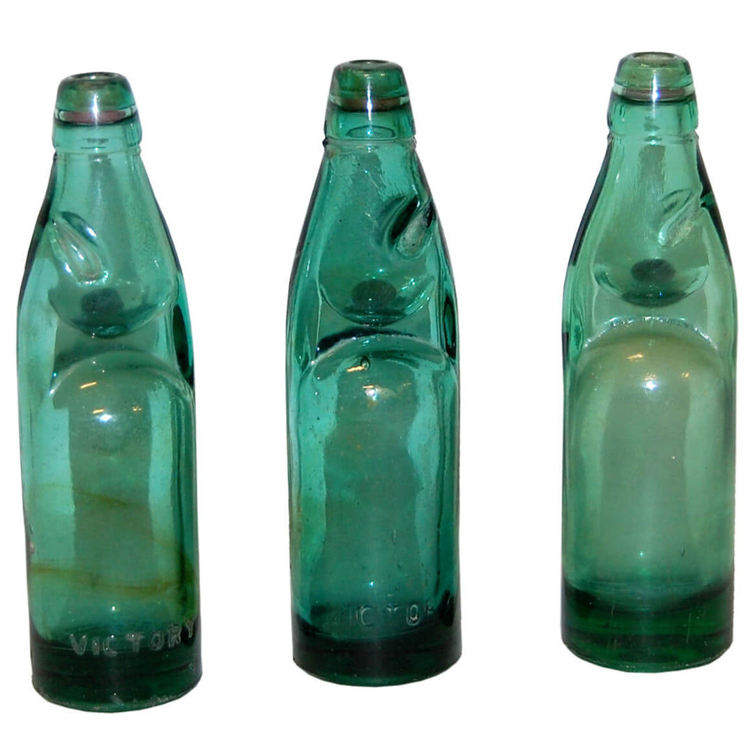 Her har du en sjov flaske i kraftig grøn glas med en unik historie. Flasken er tom, men normalvis er den fyldt med indisk sodavand. Flasken er af typen "Codd Bottles" opkaldt efter opfinderen Hiram Codd 1838-1887. Det var ham, der i 1873 fik patent på den lille kugle der ligger i flasken. Ideen er, at kulsyren og sodavandet presser kuglen op mod en gummiring, således at flasken er helt lukket. Kuglen presses ned med fingeren for at åbne flasken og man kan drikke indholdet. Super fine og dekorative. Tilføj en enkel gren eller blomst eller arrangere dem med forskellige andre fine pynteting og skab en unik personlig stemning.