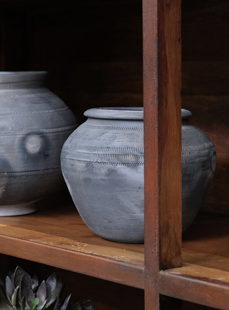 Denne lerkrukke emmer af håndlavet charme med sine fine indgraverede mønstre, der tilføjer et dekorativt element til dens enkle og naturlige design. Krukkens organiske form og rustikke patina gør den perfekt til at skabe en hyggelig og jordnær atmosfære i din indretning. Brug den som en charmerende potte, til opbevaring eller som en dekorativ genstand, der bringer karakter og personlighed til dit hjem eller din have. Hvis du bruger krukken til planter anbefaler vi et plastikindlæg da krukken ikke er vandtæt.