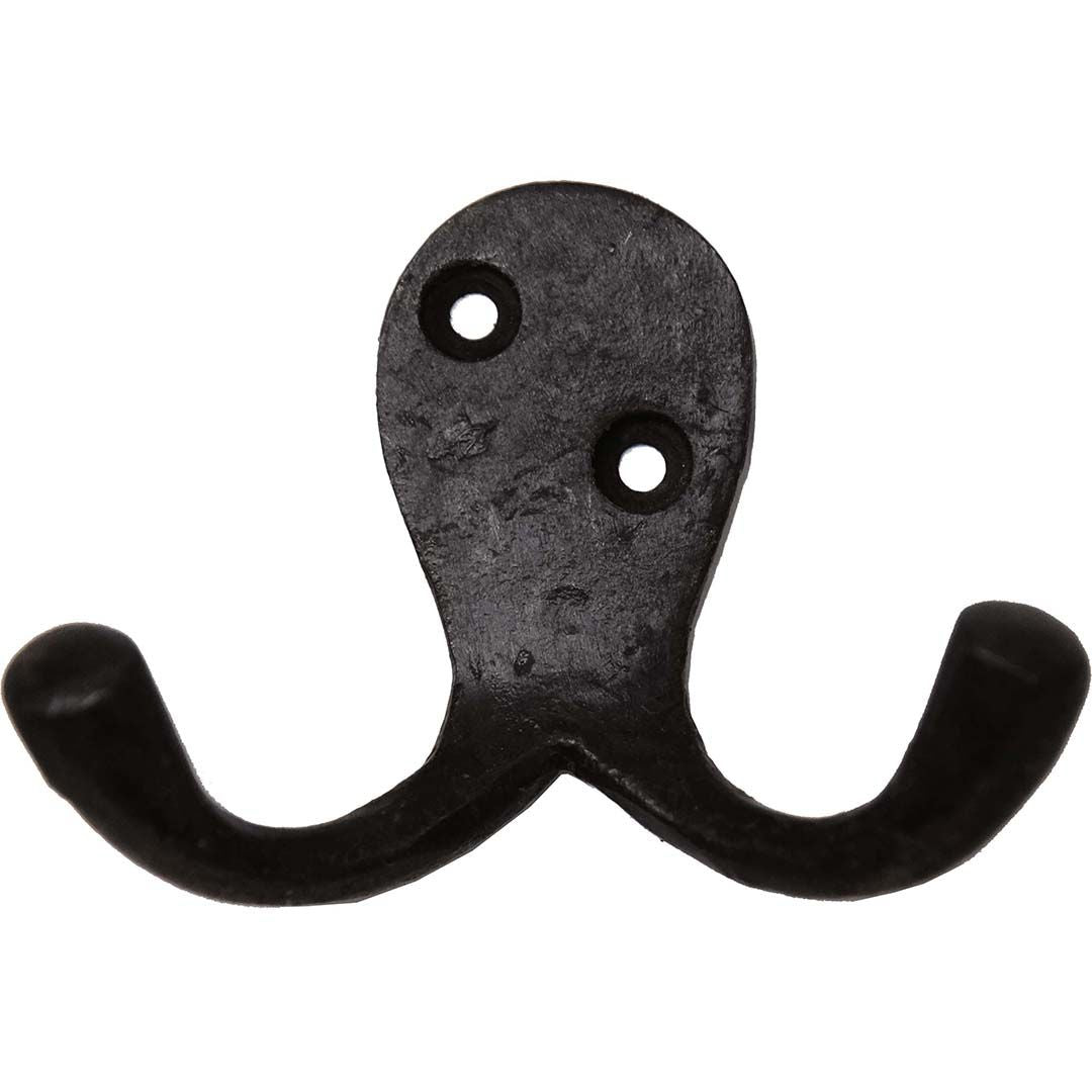 Rå og enkel dobbeltknage i jern. Brug den f.eks. til dine viskestykker, eller hæng flere op ved siden af hinanden i din garderobe til jakker. Knagen har to huller, så den kan monteres sikkert på væggen.