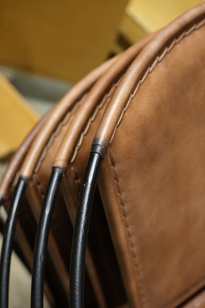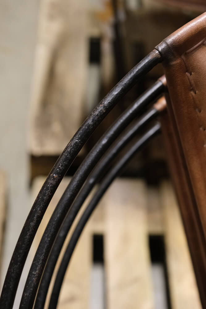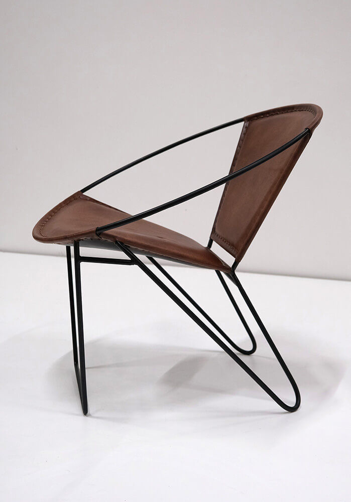 Denne superflotte loungestol er designet i et simpelt og stilrent udseende. Loungestolen er designet med et sortlakeret jernstel med læder på sæde og ryg. Det moderne helhedsindtryk med bløde, runde og organiske former gør at loungestolen udstråler go´stil. Bemærk at disse loungestole er 2. sortering, da der desværre kan være lidt rust på jernstellet og der kan være lidt sort farve på læderet, hvor læder og jern mødes. Se de ekstra produtkfoto for yderligere detaljer.