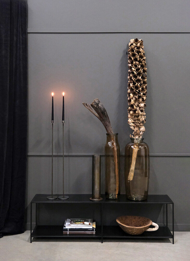 Denne høje slanke gulvlysestage i jern er en tidløs klassiker, der aldrig går af mode. Den enkle, konstruktion passer perfekt ind i ethvert rum og tilføjer et strejf af stil. Den høje slanke figur gør lysestagen ideel som en belysningsløsning ved siden af din yndlingslænestol, i entréen eller i et hjørne af dit kontor. Fås også i 2 matchende mindre størrelser.