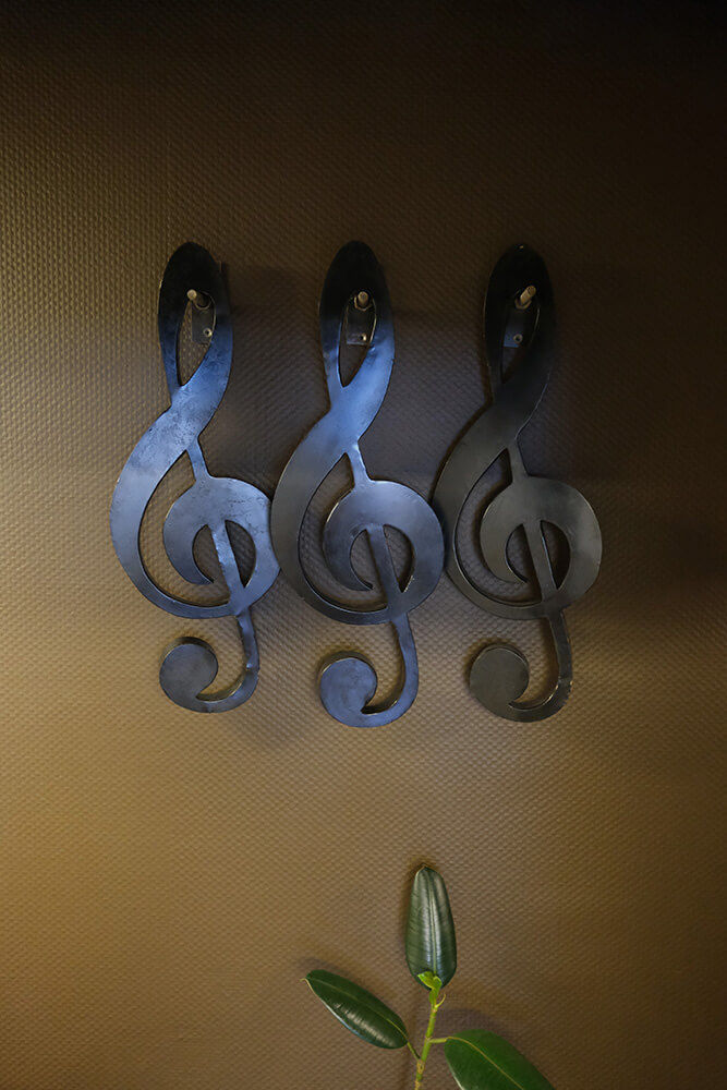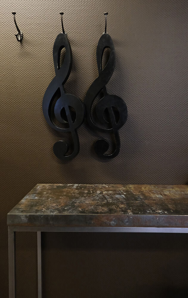 Vil du være med på "noderne" er her en dekorativ og finurlig G-nøgle fremstillet i sortmalet jern. Smukt vægophæng i privaten eller i din business. En node er et musikalsk skrifttegn, et abstrakt udtryk for en tones højde og varighed. Denne overdimensionerede node kan give blikfang, hvor end du vælger at placere den.