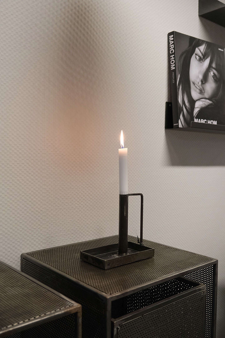 I den nordiske indretningsstil er lysestager et must, og med denne kammerstage fremstillet i jern, kan du tilføre din indretning hygge i et dekorativ og råt design. Den rektangulære form giver mulighed for at pynte stagen til årstidens begivenheder. I den søde juletid kan du pynte bakken med gran og kogler. Til Påske vil den tage sig smukt ud med forårsløg og dekorerede æg eller et lille tæppe af hjemmesået karse. Du kan også blot vælge at lade den stå uden pynt, da den er en flot dekoration i sig selv. Du kan indrette med lysestager i vindueskarmen, på middagsbordet eller sofabordet for at få en hyggelig atmosfære. Denne lysestage passer til kronelys.