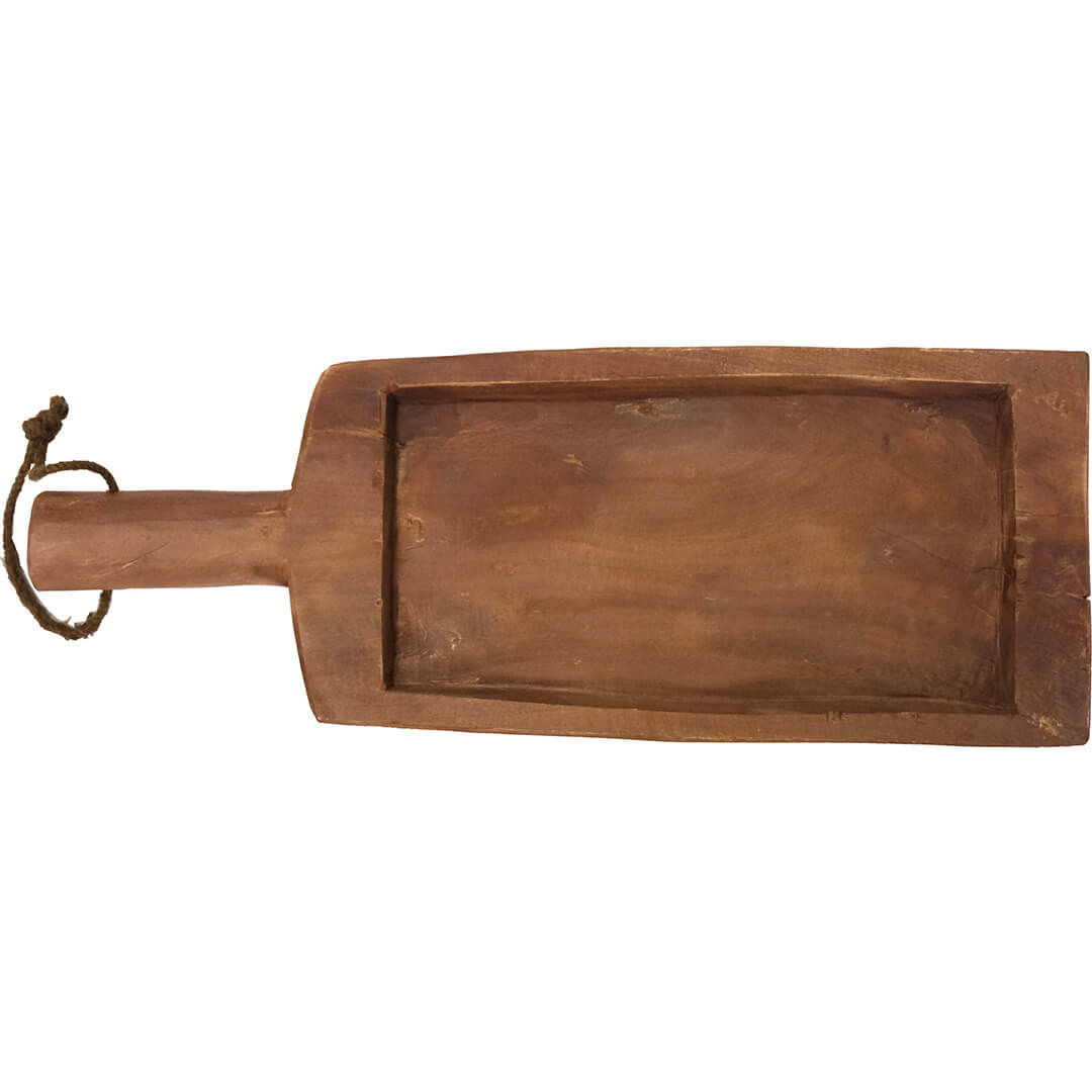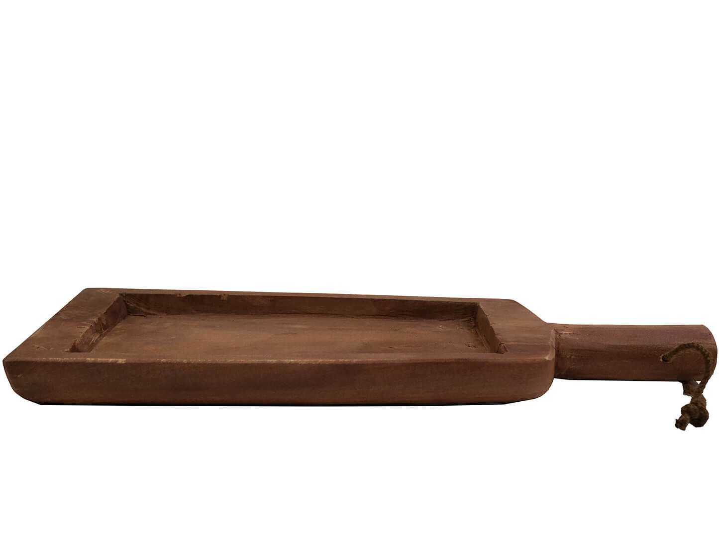 Rustikt serveringsbræt med fordybning. Et lækkert måltid fortjener en lækker anretning. Med dette serveringsbræt i træ, kan du give din mad en spændende præsentation som tilføjer lidt ekstra til madoplevelsen. Brug vand og sæbe til rengøringen, og forlæng holdbarheden ved at smøre brættet med vegetabilsk olie. Opvaskemaskine anbefales ikke.