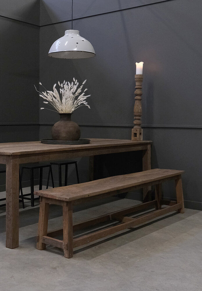 Fremstillet af genbrugstræ, bringer denne bænk autentisk og rustik atmosfære til din indretning. Bænkens træ viser tydelige spor af tidligere anvendelse, hvilket giver små, unikke detaljer til hver bænk. Lad Enghave bænken være det charmerende element, der bringer naturen ind i din indretning.