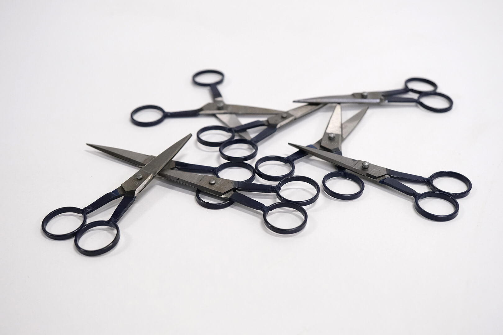 Skøn enkel lille saks med jernklinge og et mørkeblåt håndtag. Saksen er perfekt til kontoret eller din butik, men kan også bruges som en dekorativ del af indretningen. Saksen er ca. 12 cm lang, så den kan også nemt tages med på farten sammen med f.eks. dit strikketøj.