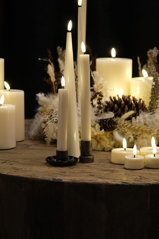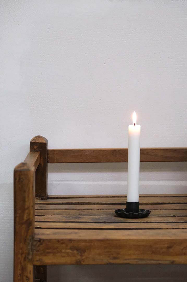 Fin lille jernlysestage formet som en blomst. Spred glæde og hygge i dit hjem med denne skønne patinerede stage, som passer perfekt i enhver boligindretning. Brug den i et fint stilleben med andre jernlysestager, eller en fin vase med nogle tørrede blomster. Du kan bruge kronelys til stagen.