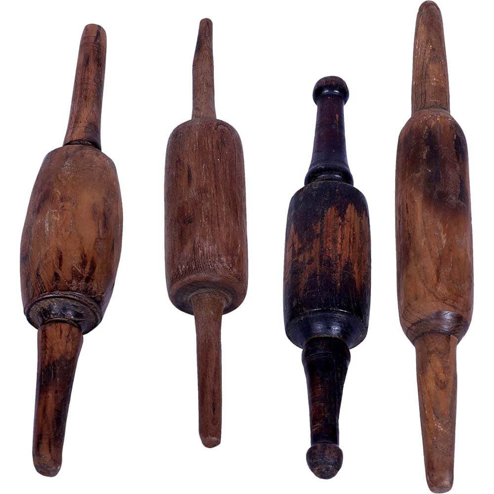 Disse gamle chapatiruller er unikke håndlavede redskaber, der har været brugt til at lave traditionelle indiske chapatis som er indiske fladbrød. Hver rulle bærer tydelige spor af mange års brug, med smukke træårer og slid, der kun gør dem mere charmerende. Deres naturlige patina og forskellige former giver dem et råt, men autentisk udtryk. Disse chapatiruller er perfekte som dekorative elementer i et køkken, restaurant eller café, hvor de tilføjer en rustik og kulturel stemning. Uanset om de hænger på væggen eller ligger fremme som en del af en dekoration, vil de skabe en nostalgisk atmosfære, som hylder håndværk og traditioner.