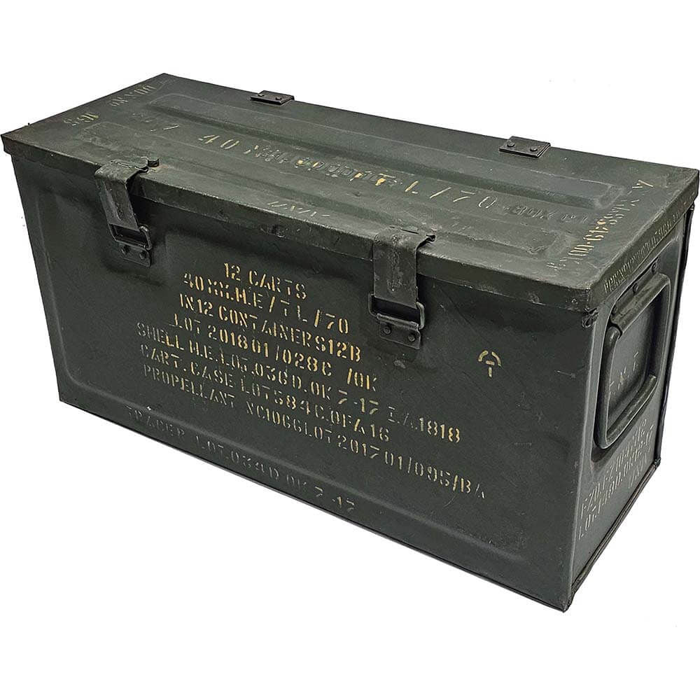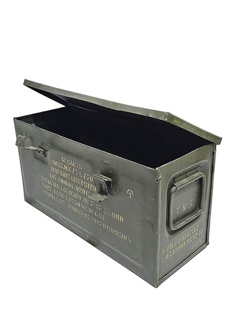 Rustik, rå og med en historie at fortælle. Denne originale militærkasse i solidt, patineret jern har været igennem lidt af hvert – og det kan ses på den helt rigtige måde. Den dybgrønne farve, de karakteristiske gule markeringer og de robuste lukkebeslag giver den en autentisk, industriel charme. Brug den som en rå opbevaringsløsning i butikken, som et cool sidebord i loungen eller måske som en statement-piece i en bar eller restaurant. Den praktiske størrelse gør den nem at placere, mens det solide metal sikrer, at den kan holde til lidt af hvert. En cool kasse med masser af autenticitet og kant.