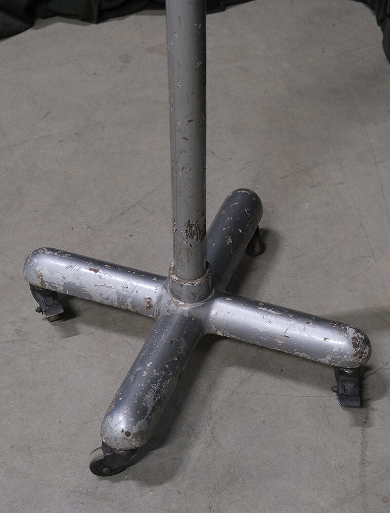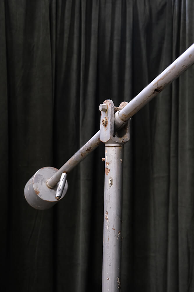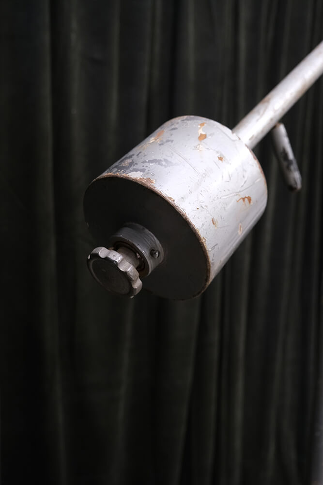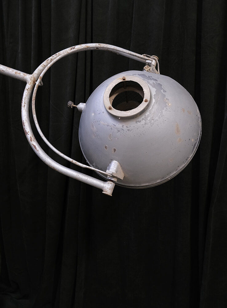 Tilføj et stykke historie til din indretning med denne gamle operationslampe, der er et perfekt eksempel på vintage industrielt design. Lampen har en kraftig fod med hjul, der gør det let at flytte den rundt. Uden ledning er lampen skabt til dekorative formål og vil gøre sig fantastisk som et blikfang i et hjørne af dit hjem eller erhvervslokale. Den robuste konstruktion og patina understreger dens tidløse charme.