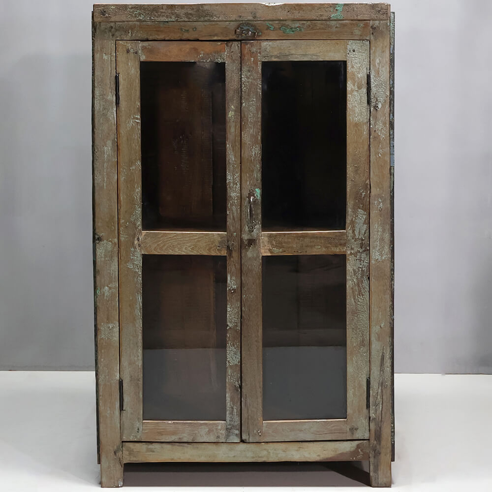 Dette charmerende vitrineskab er et ægte vintage fund med masser af historie og personlighed. Træets slidte overflade og de smukke, autentiske farvespor giver det en rustik og unik charme. De to glaslåger gør skabet ideelt til udstilling af dine yndlingsting, samtidig med at det beskytter dem. Skabet passer perfekt ind i en restaurant eller butik, hvor det kan bruges til at fremvise alt fra porcelæn til dekorative genstande. I hjemmet vil det være et smukt supplement til stuen, spisestuen eller køkkenet, hvor det kan tilføre rummet masser af sjæl og autenticitet. Med sin rå patina og solide konstruktion er dette vitrineskab en tidløs klassiker.