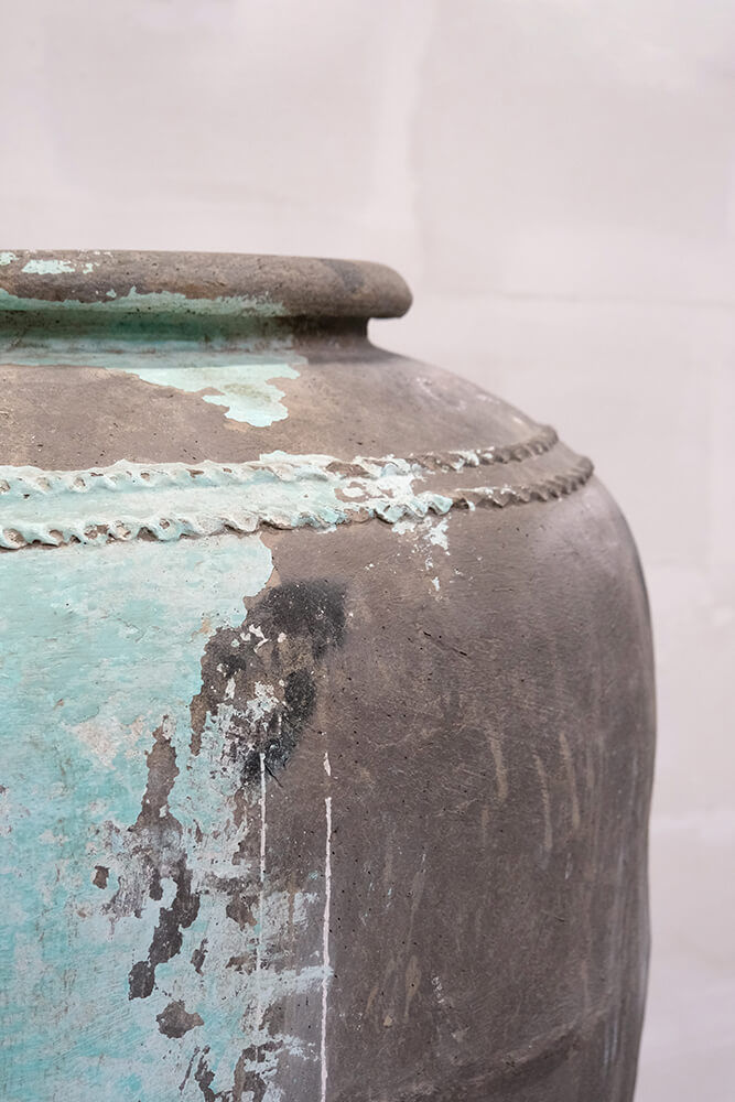 Her har du en stor unik krukke med stor WOW-faktor. Krukken er en smuk skulptur at have stående, og er også ideel at bruge til store planter indendørs eller i dit orangeri. Med et oliventræ eller citrustræ, vil det lede tankerne mod varmere himmelstrøg. Krukken er ikke 100 % vandtæt eller frostsikret. Vi anbefaler derfor, at du laver et plastikindlæg
