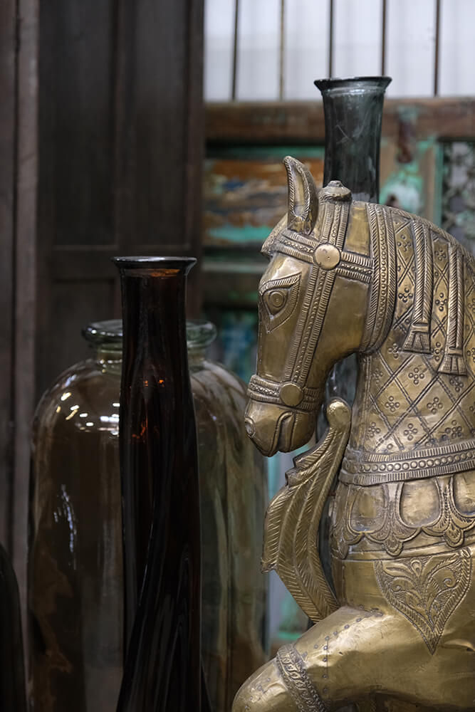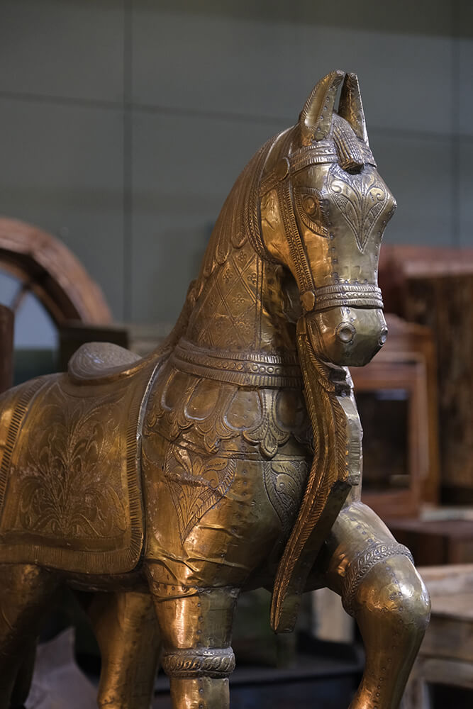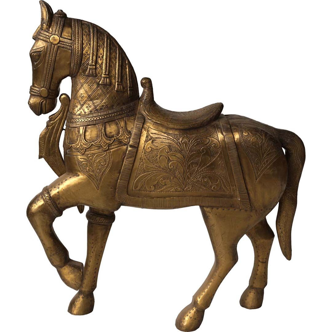 Utrolig smuk og elegante indisk træhest belagt med detaljeret graveret messing.