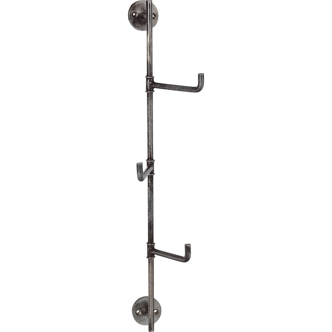 Smart og praktisk knagerække med 3 justerbare arme i pulverlakeret jern til tøj, smykker, - ja kun fantasien sætter grænser. Da knagerækken er vægophængt, sparer du en del gulvplads. Hvis armene ikke er i brug, skubber du dem blot ind til væggen. En genial løsning til den lille entré eller værelset.