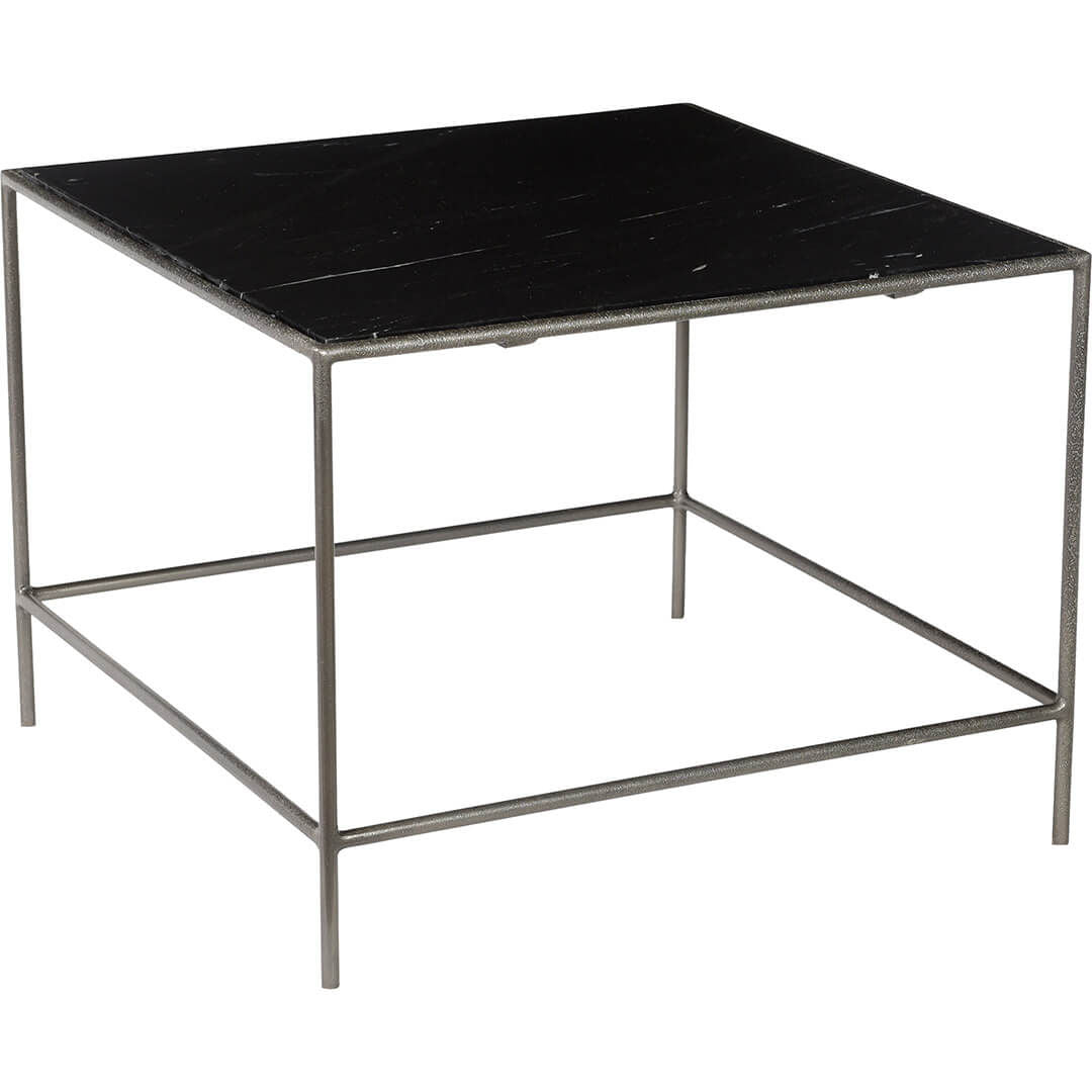 Dette sofabord har en smuk, sort marmorbordplade fuld af flotte marmoreringer. Understellet er fremstillet i jern, hvilket giver en industriel kontrast til bordpladens mere elegante udtryk. Her får du et flot bord, der passer ind i den moderne indretning.