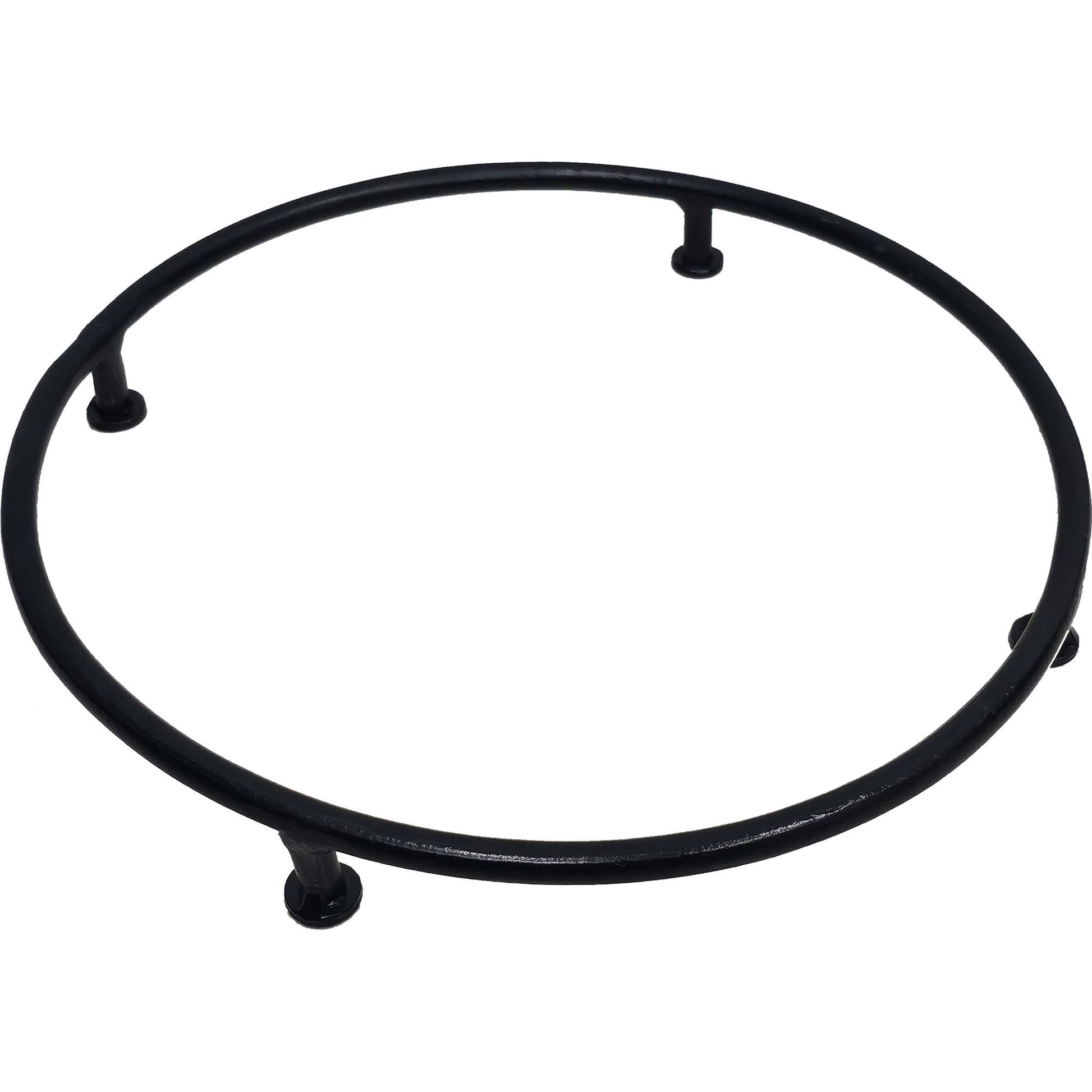 En solid og enkel jernring med en diameter på 30 cm, der står sikkert på små fødder. Det rå, sorte jern giver et industrielt og praktisk udtryk, der passer ind i mange forskellige miljøer. Denne store ring er oplagt til større krukker, planteopsatser eller andre dekorative genstande. De små fødder hæver genstanden fra underlaget og skaber en funktionel og stabil base. Brug den til at fremhæve en stor plante i hjørnet af stuen, som opsats til en krukke i restauranten, eller til at vise produkter frem i en butik. Et simpelt og slidstærkt valg, der gør jobbet uden at stjæle fokus. Jernringen findes også i følgende andre størrelser: 12, 15, 18, 20, 24, 35 og 40 cm.