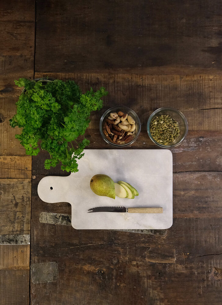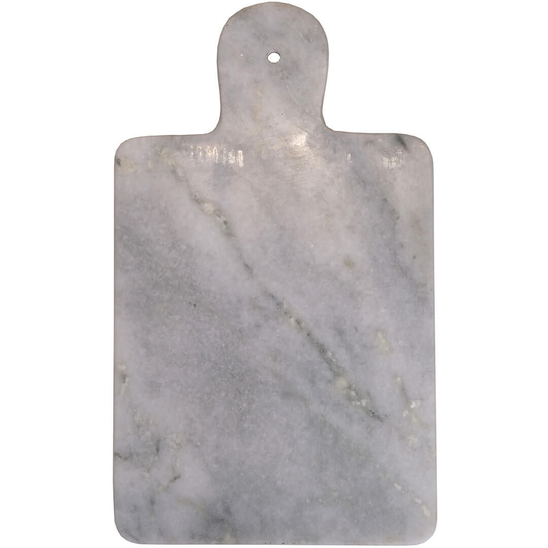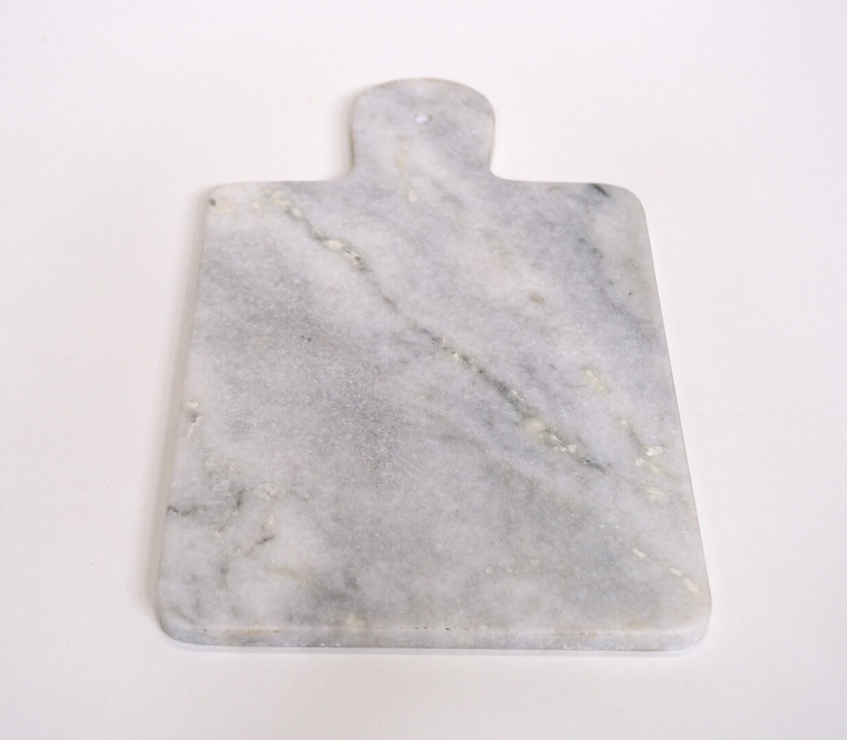 Dette skærebræt i marmor kan bruges på begge sider og det praktiske håndtag gør det nemt at flytte brættet. Skærebrættet i lyst marmor kan sagtens stå fremme og fungere som et dekorativt element i køkkenet, når det ikke er i brug. Du kan også bruge det smukke skærebræt til servering af f.eks. tapas eller andre lækkerier, da det flotte design vil pynte på ethvert bord. Når det kommer til hygiejnen, så er marmor meget velegnet til skærebræt eller serveringsfad, da materialet ikke er porøst, og dermed ikke suger væsker. Til rengøring af marmorskærebrættet skal du blot anvende vand og sæbe. Opvaskemaskine anbefales ikke.