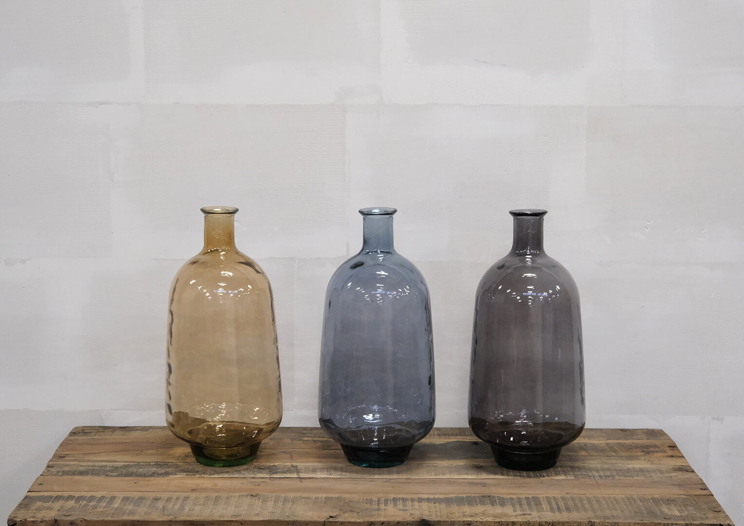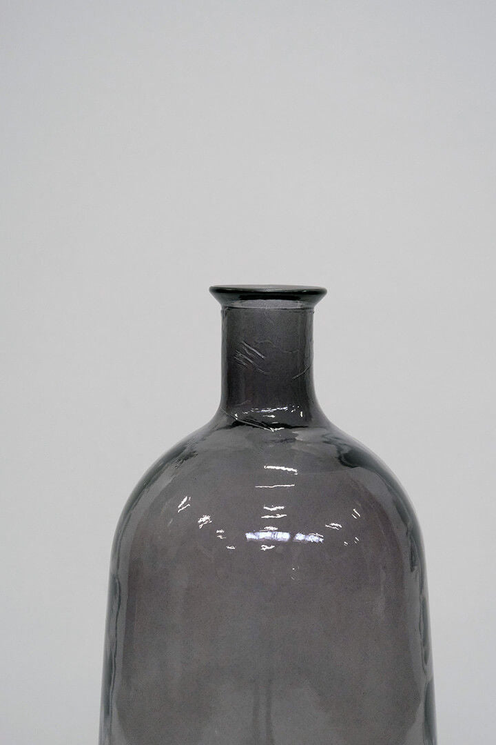 Her har du en stor smuk og flaskeformet gulvvase i en grå nuance med en kunstnerisk balloneffekt. Den smukke gulvvase i glas er høj og slank, og kan enten stå alene eller sammen med andre vaser og krukker i andet materiale. Denne gulvvase på 60 cm er perfekt til årstidens grene eller tørrede blomster. Med en smuk gulvvase som denne kan du tilføre din indretning en sofistikeret og lækker stil. Vasen er lavet af 100% genbrugsglas, og der kan derfor forekomme små bobler og mindre ujævnheder i glasset.
