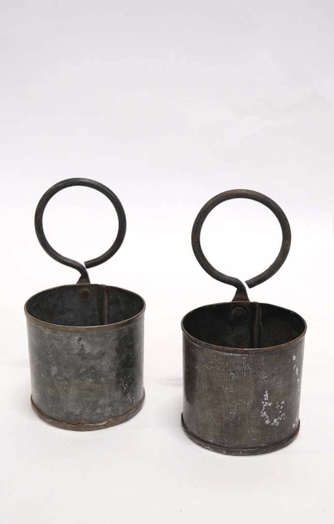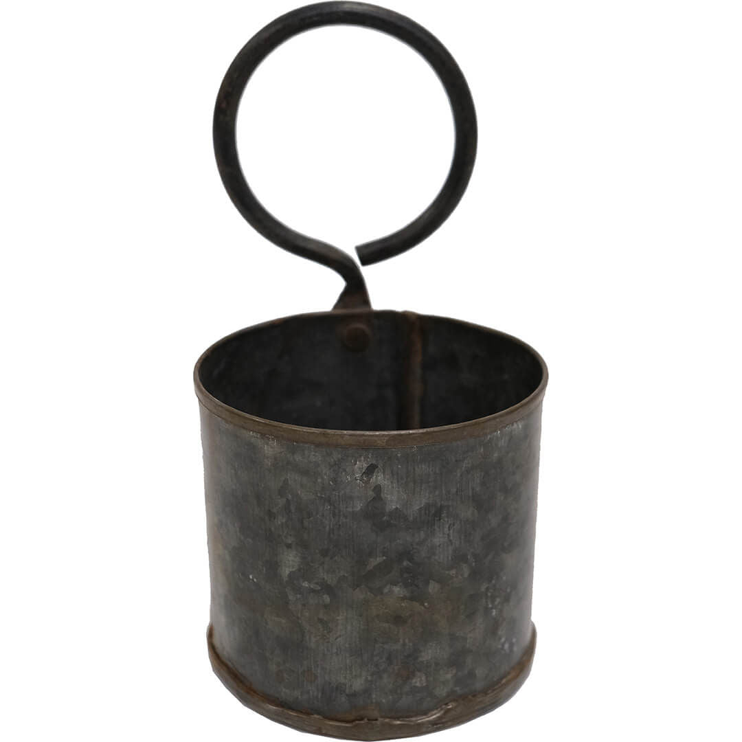 Enkel, dekorativ og rustik beholder fremstillet i jern med hank. Beholderen har et utal af anvendelsesmuligheder. Du kan bruge den i køkkenet til bestik, krydderurter, kaffekapsler eller køkkenredskaber. Beholderen kan både stå på bordet eller hænge på væggen. På kontoret kan den hænge på din opslagstavle og bruges til opbevaring af dine skriveredskaber og mindre kontorartikler. I badeværelset kan du bruge beholderen til opbevaring af hårbørster, tandbørster, makeup eller hårelastikker. I dit orangeri vil disse flotte potter være perfekte til alle mulige former for planter. Du skal dog være opmærkom på, at potten ikke er vandtæt, hvorfor du skal fore den med plastik eller stille en lille vandtæt indsats i den. Bemærk at den angivne højde er inkl. ophæng. Selve bøtten er 9 cm høj.