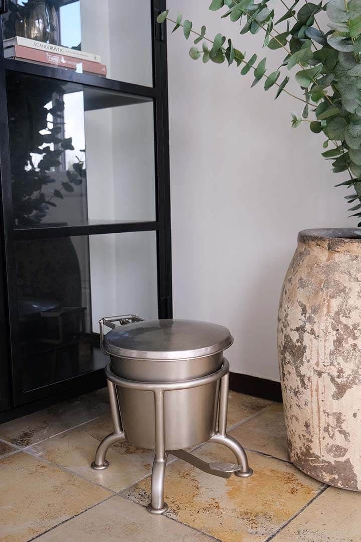 Denne klassiker fra Trademark Living er en pedalspand med vippelåg udført i kraftig kvalitet. Kan bruges i køkkenet, på badeværelset eller på kontoret. Pedalspanden er nem at åbne - selv om du har hænderne fulde. Den er utrolig paraktisk og hygiejniske, da dine hænder aldrig kommer i kontakt med den, da du åbner låget ved at træde på pedalen. Sidst men ikke mindst har denne pedalspand et cool udtryk, og kan give et flot udtryk i din indretning. Findes også her på siden i large model- Søg på Klapp i webshoppen.