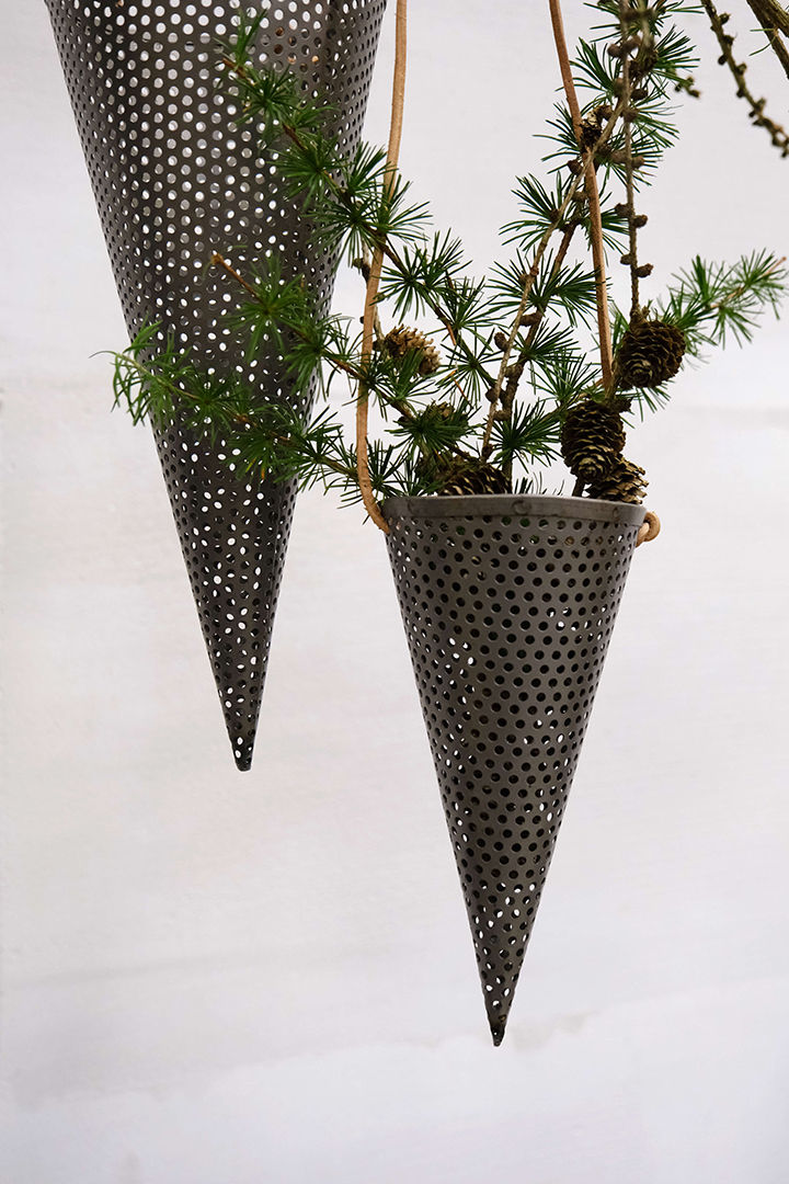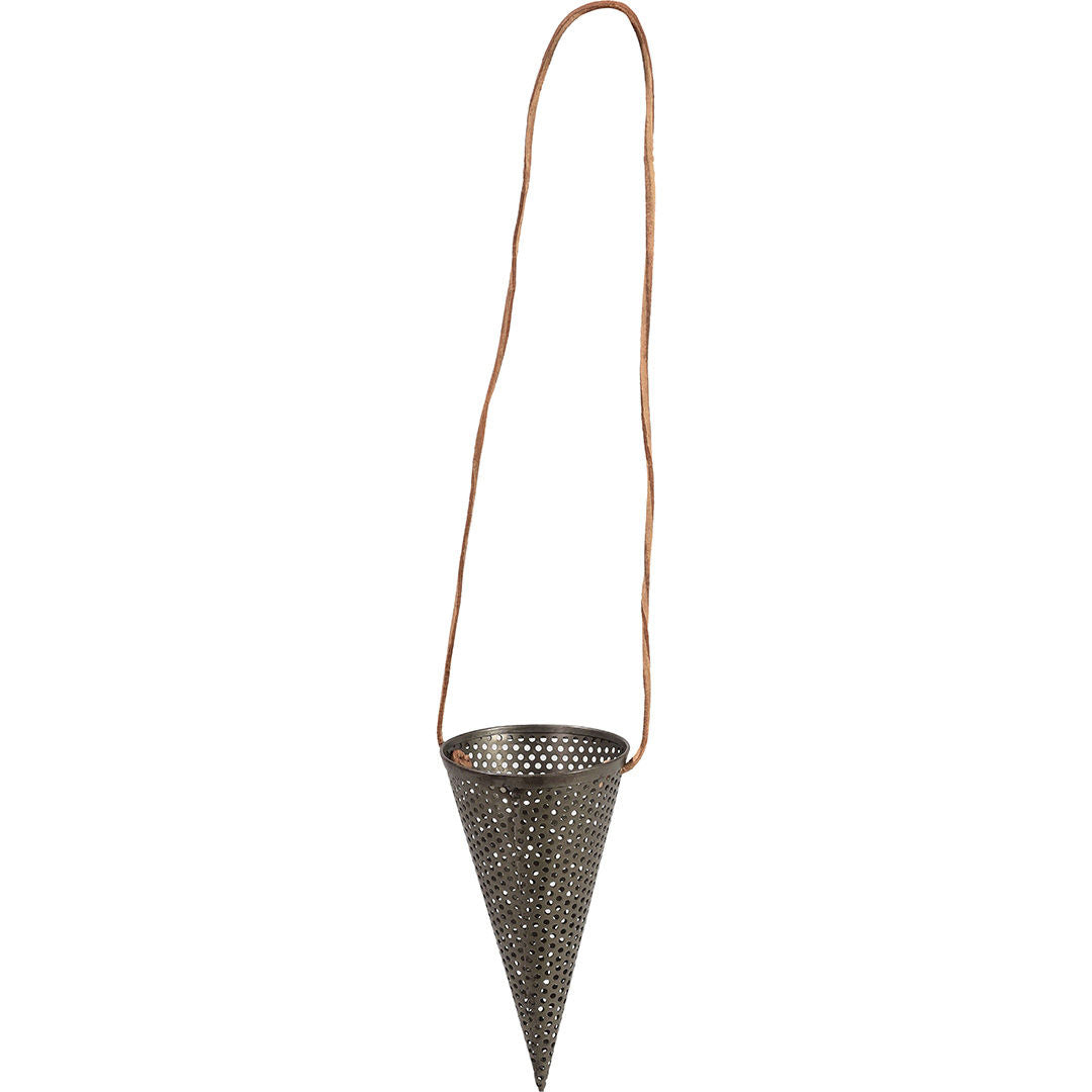 Dette cool og rå kræmmerhus i perforeret jern hører til årets julepynt hos Trademark Living. Kræmmerhuset er super dekorativt i sig selv, men vil også være flot med en enkelt gren eller andet naturpynt hvor farverne vil komme til udtryk gennem de små huller i jernet. Er du på udkig efter julepynt til vinduer til din butik eller din restaurant vil det også være vildt cool at blande kræmmerhusene i jern og hænge dem op i forskellige højder i en klynge. Kræmmerhusene kommer med 38 cm læderophæng.