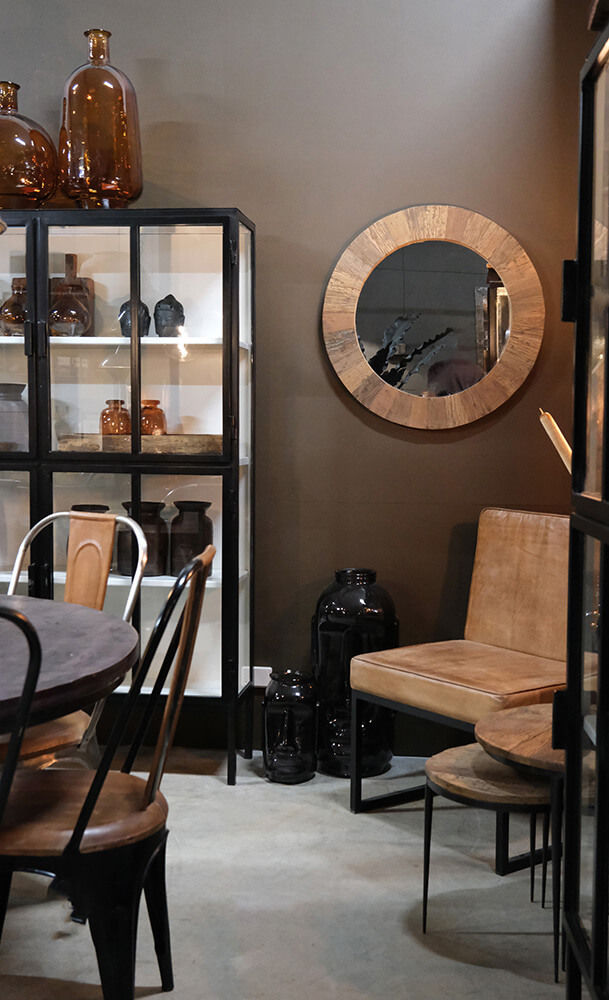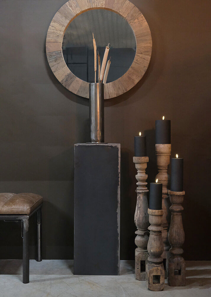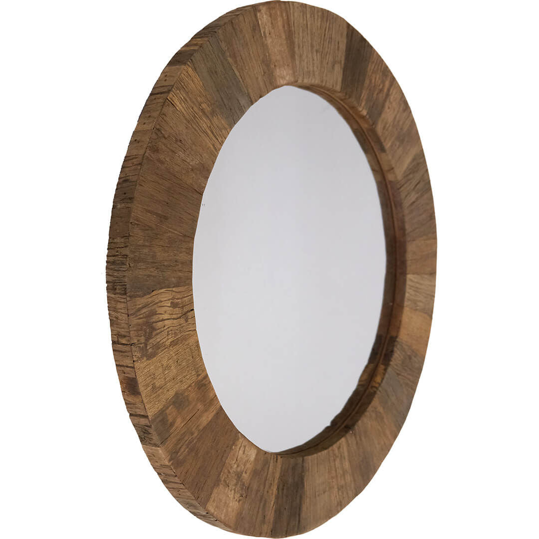 Dette smukke runde spejl med træramme i råt genbrugstræ er mere end et praktisk hverdagsprodukt. Spejlet er også en attraktiv dekoration i din indretning, der vil skabe blikfang. Vægspejlet kan hænges i ethvert rum og du kan med fordel "forstørre" dine små rum visuelt ved at placere spejlet centralt. Du kan også bryde en stor væg ved at bruge det som dekoration i stedet for billedrammer. Spejlet giver en hyggelig og personlig stemning. Spejlet findes også i 70 x 124 cm og 100 x 200 cm