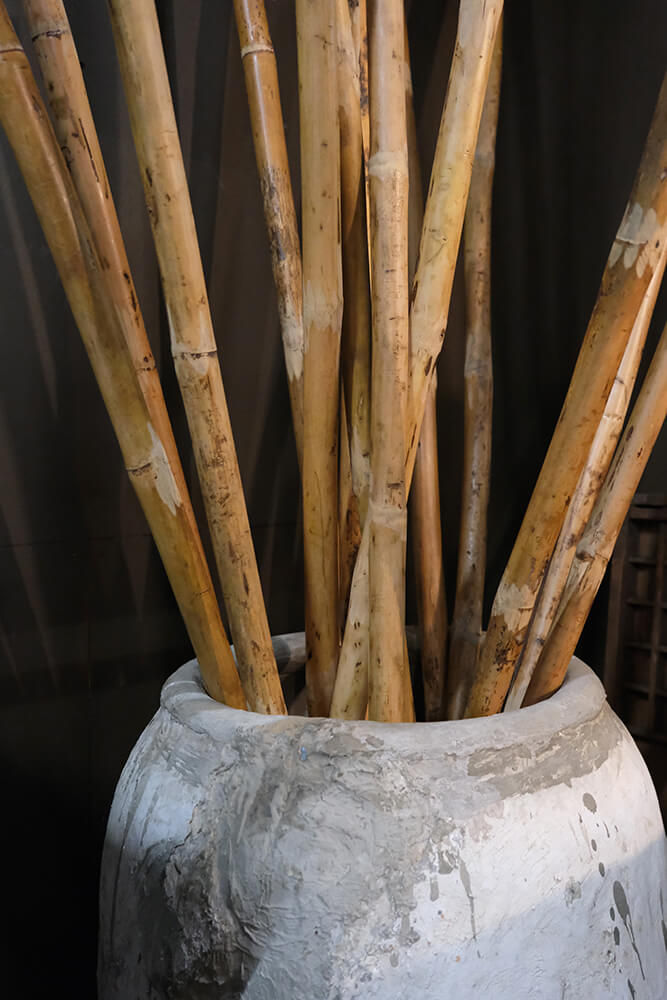 Med lange bambusstokke kan du invitere naturen inden for. De lange stokke er hårde som ben og de er hule. Bambusstokkene er flotte og dekorative i store krukker, eller stil bambusstokkene i en klynge for sig op af en væg. Hvis du er lidt fiks på fingrene, kan du også skære bambusstokkene til i rette størrelser, hænge dem op i remme, og vupti så har du et enkelt og simpelt tøjstativ. Fordi bambus er den hurtigst voksende plante på jorden, er bambus et miljøvenligt og bæredygtigt valg.