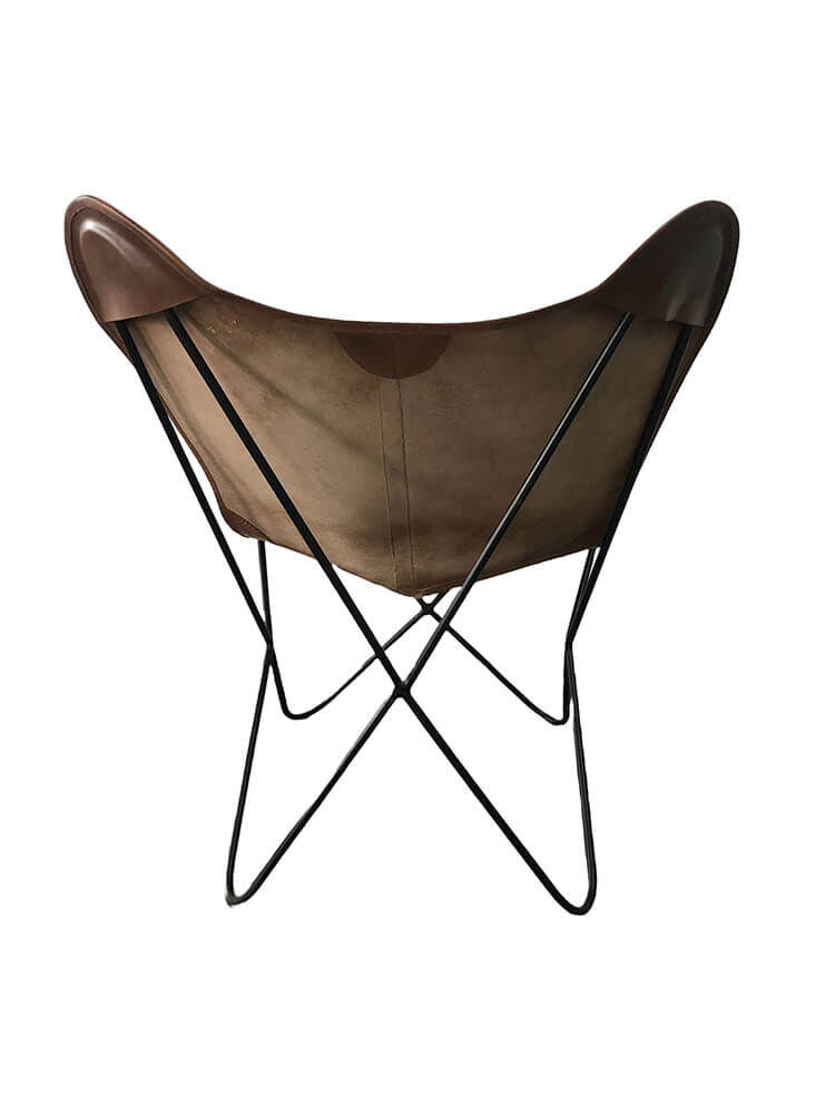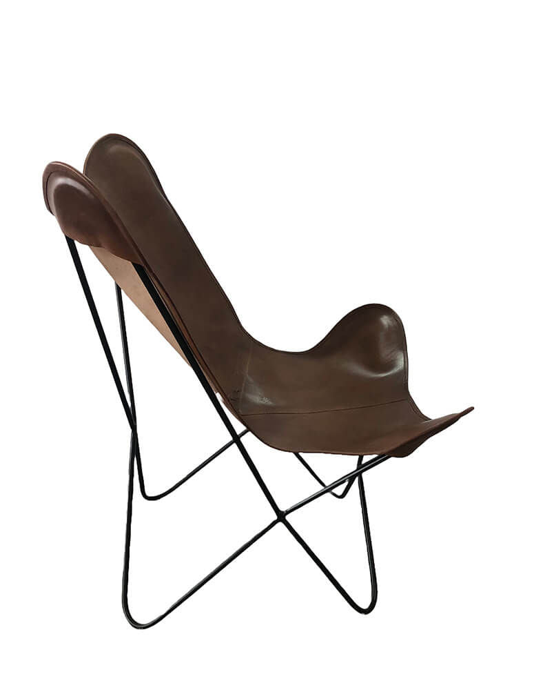 Er du til minimalisme og stilfuld indretning er her et godt bud på en loungestol med et næsten skulpturelt udseende. Denne Bohemian loungestol er en fryd for øjet, og et smukt blikfang i din indretning. Loungestolen bliver leveret i to dele. Understellet er fremstillet i sortmalet jern og er med små synlige svejsninger. Bøffellæderbetrækket er i en lækker brun farve og kommer i separat æske lige til at pakke ud og sætte på understellet. Hvis du ønsker at pifte loungestolen lidt op, kan du med fordel lægge et blødt lammeskind i stolen. Det giver både hygge og varme. Loungestolen er både åben og omfavnende i dens design, og passer således perfekt ind i den rummelige entré, hyggehjørnet eller som supplement omkring sofabordet. Stolen fås i forskellige farvevarianter, og dem kan du finde i shoppen.