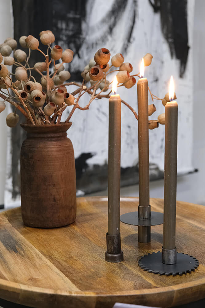 In two ways er en rå enkel lille jern lysestage - stagen kan vendes i en af de to højder man ønsker. Lysestagen er et fint valg til det industrielle moderne eller minimalistisk indretning. Lysestagen kan stilles hvor der ønskes rene linjer på borde, vindueskarme og hylder. Eller stil stagerne i en stor samlet flok og nyd hyggen.