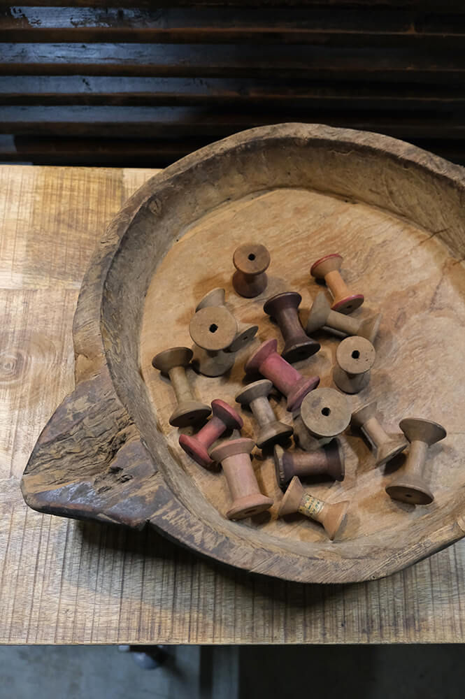 Skøn lille gammel tråd trisse i træ. Alle tråd trisserne har en unik struktur og patina. Lad disse gamle tråd trisser være med til at skabe en stemningsfuld unik dekoration ved f.eks. at lægge flere af dem i en skål. Er du lidt kreativ kan du selv male fine mønstre på dem, ellers er de også skønne som de er. Er du til genbrug kan du også rulle smukke brugte gavebånd på dem og på den måde skabe orden og en unik dekoration på samme tid.