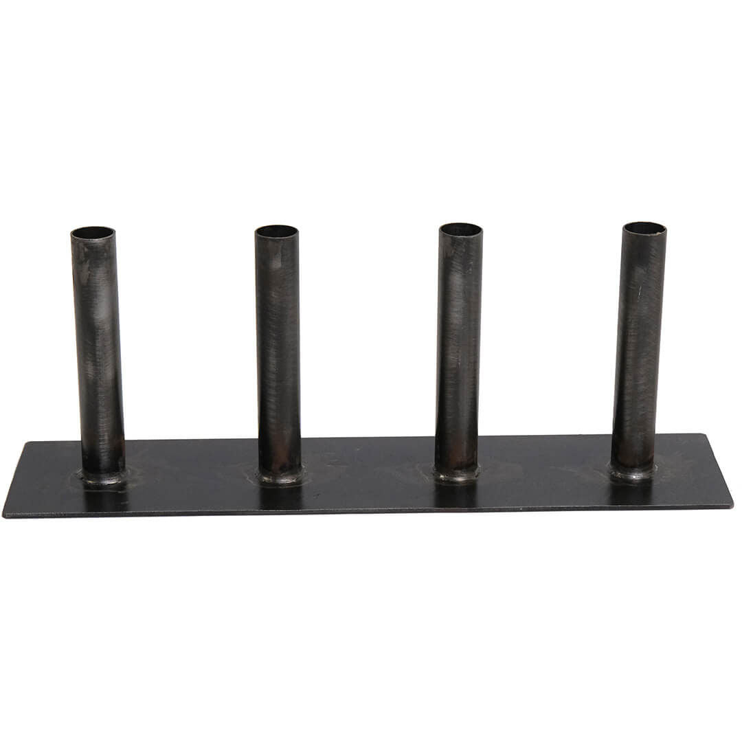 Flot, stilren, maskulin lysesstage i pulverlakeret jern. Lysestagen er til fire stearin- eller LED-lys og kan bruges som adventsstage. Du kan også vælge at style stagen delvist med lidt grønt eller lade den stå helt enkel og dekorativ.