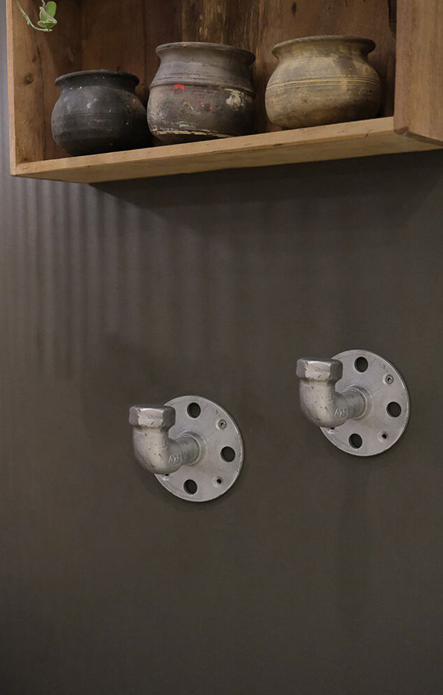 Her har du en rustik knage fremstillet i jern. Krogen kan bruges både i dit private hjem og i din business. Brug den i entréen til overtøj og tasker, i prøverummet i din tøjforretning, eller brug den i din restaurant til køkkenchefens læderforklæde. Krogen er også velegnet til at hænge bøjler på. Mulighederne med denne knage er mange. Krogen har en solid rund plade med huller, så den kan monteres sikker på væggen. Med denne kraftige og markante krog tilfører du din indretning et råt og maskulint touch.