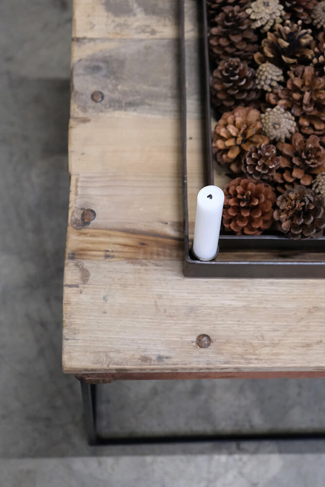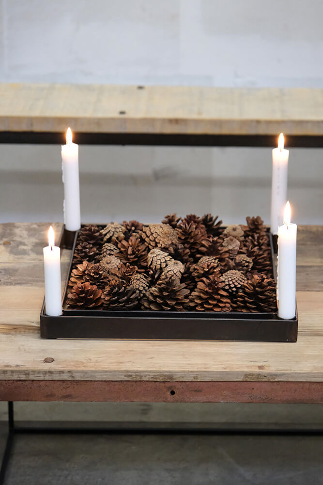 Kvadratisk adventsstage til 4 lys. Adventsstagen er lavet i jern og udstråler et industrielt og råt look i sig selv. Den kan fungere som en cool adventsstage, men kan sagtens bruges året rundt. Hvis du hænger den i loftet, kan du udskifte grene og andet naturpynt efter årstiden. Lader du den stå på bordet kan du udskifte stearinlysene efter sæsonens trend og evt. tilføje julekugler, påskepynt, sommerblomster eller kreere en uhyggelig Halloween dekoration. Mulighederne er uendelige.