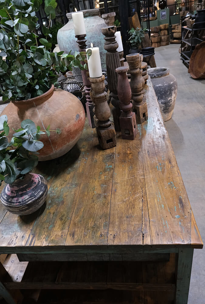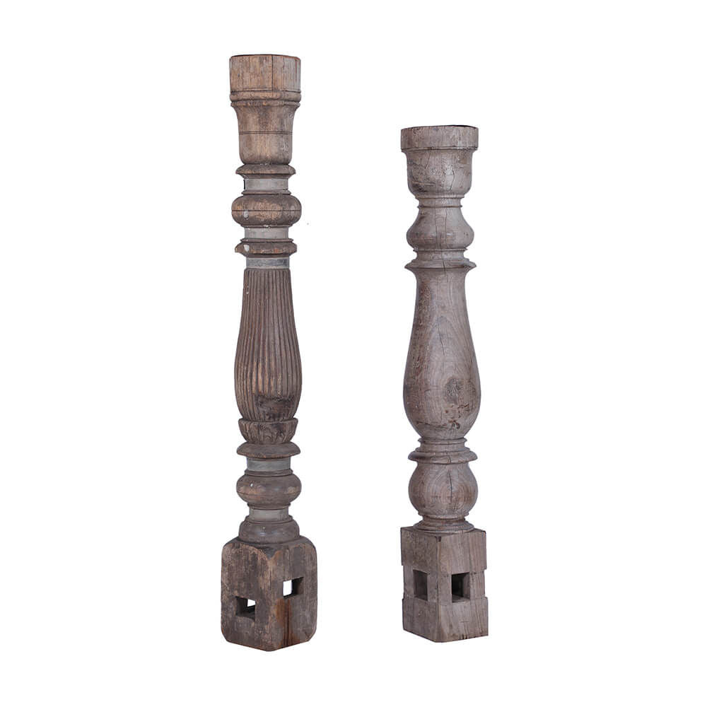 Vi har fået de flotteste lysestager lavet af gamle bordben i XL-størrelse hjem. Disse stager skiller sig ud med deres smukke udskæringer og voluminøse design. Med deres XL-størrelse tilføjer disse lysestager en iøjnefaldende atmosfære til ethvert rum. Placer disse lysestager som centrale stykker på dit bord, på pejsen eller andre fremtrædende steder i dit hjem. De vil med garanti tilføre en ekstraordinær skønhed og stemning til din indretning. Er fra 70 - 90 cm høje.