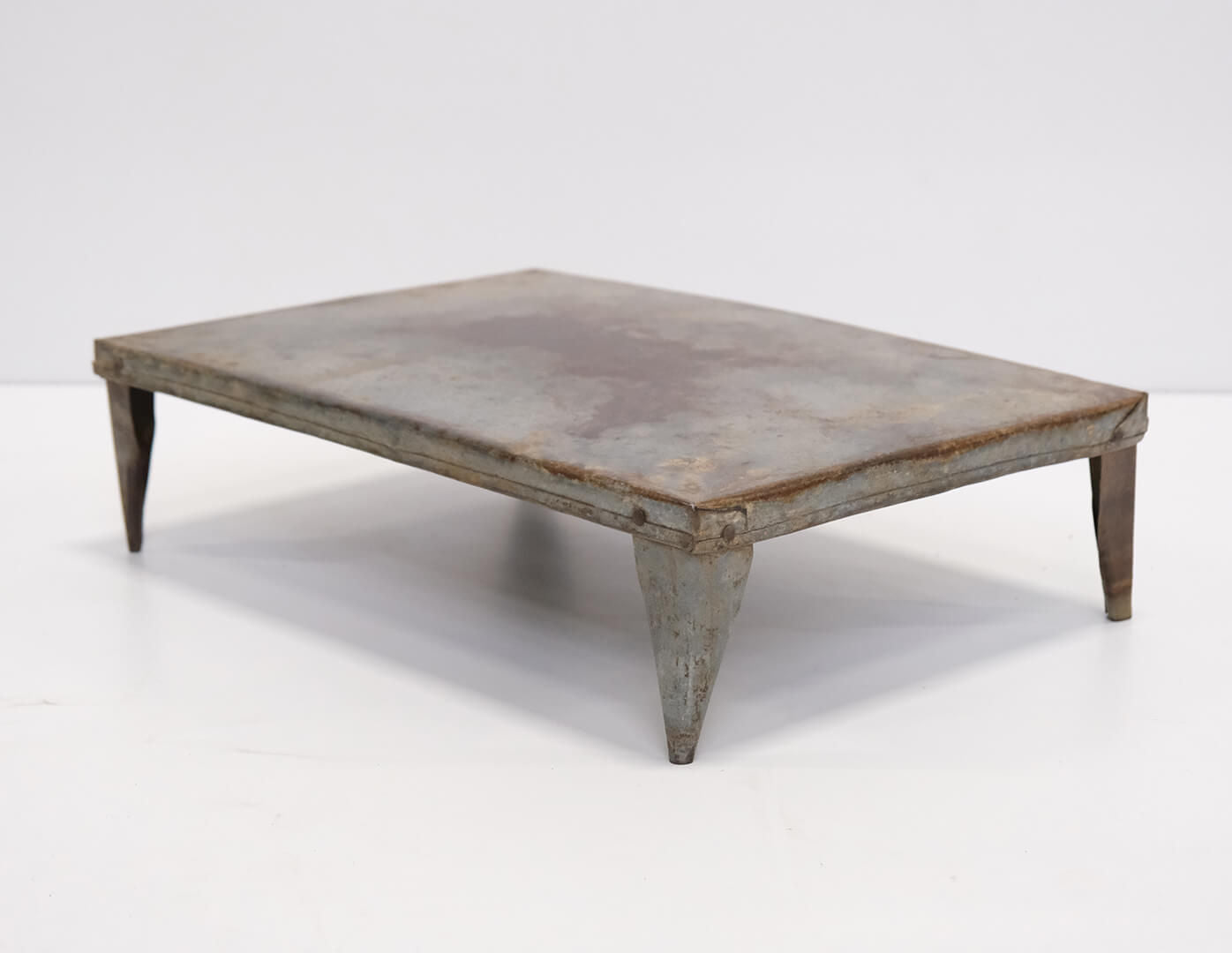 Metalbakke med rå patina og små ben. Elsker du også genbrug og ting med en historie? Med denne metalbakke får du begge dele. Bakkens unikke patina skyldes, at den som spisebord har fungeret som samlingspunktet for en indisk familie.
