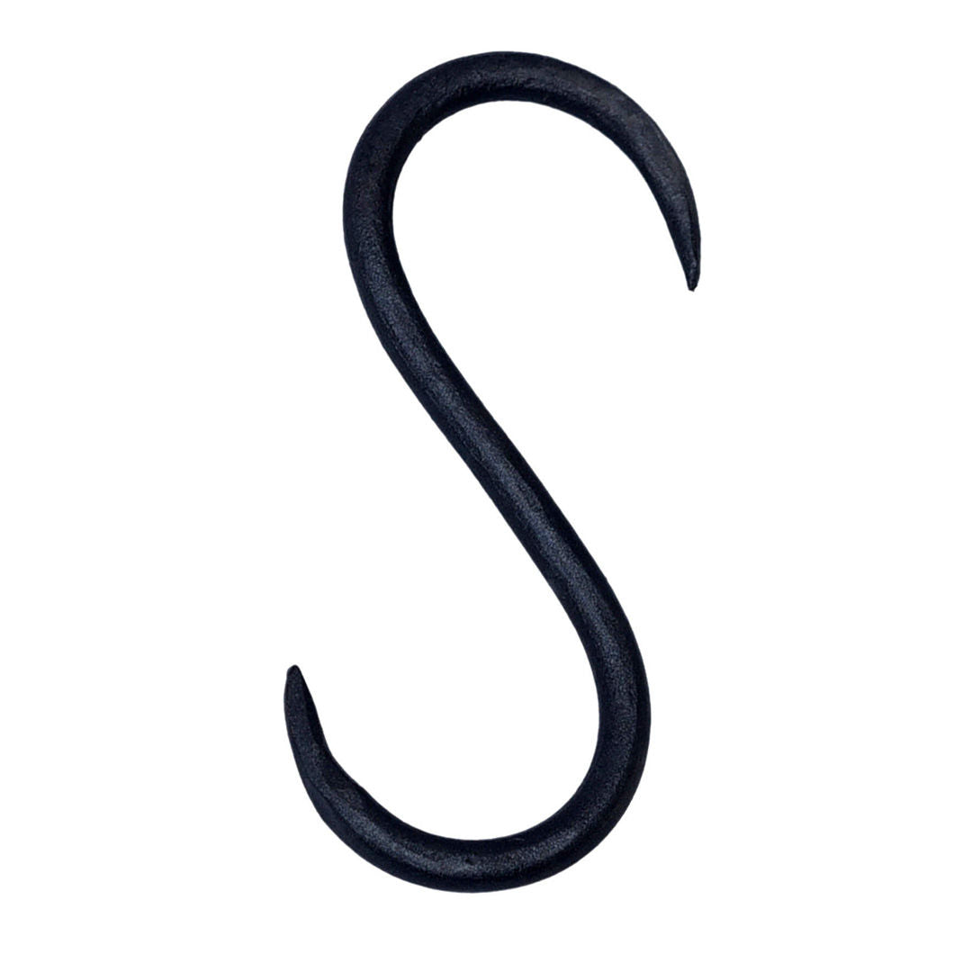 S krog i sortmalet jern. Denne krog har mange anvendelsesmuligheder. Du kan bruge krogen alle steder i din indretning. På badeværelset til håndklæder, i entréen til overtøj og tasker, i køkkenet til viskestykker og køkkentøj, i dit walk in closet til bælter og accessoires eller til noget helt andet. Et multifunktionelt produkt. S krogen findes både i small og large