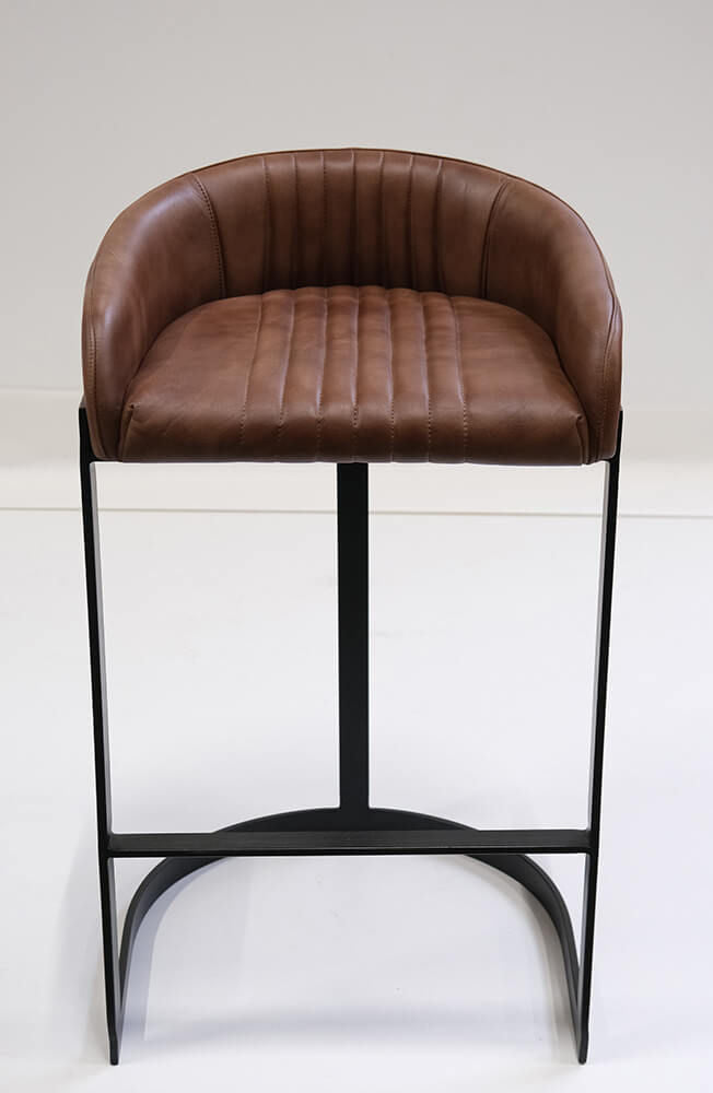 Denne høje barstol kombinerer en organisk form med et råt udtryk. Det bløde, brune quiltede læder giver komfort og stil, mens det sorte metalstel tilføjer en industrielt inspireret kant. Barstolen har både en dyb siddeflade samt ryg og fodstøtte, hvilket forstærker komforten. Barstolen er perfekt i baren eller caféen, hvor funktionalitet møder karakter og maskulint udseende.