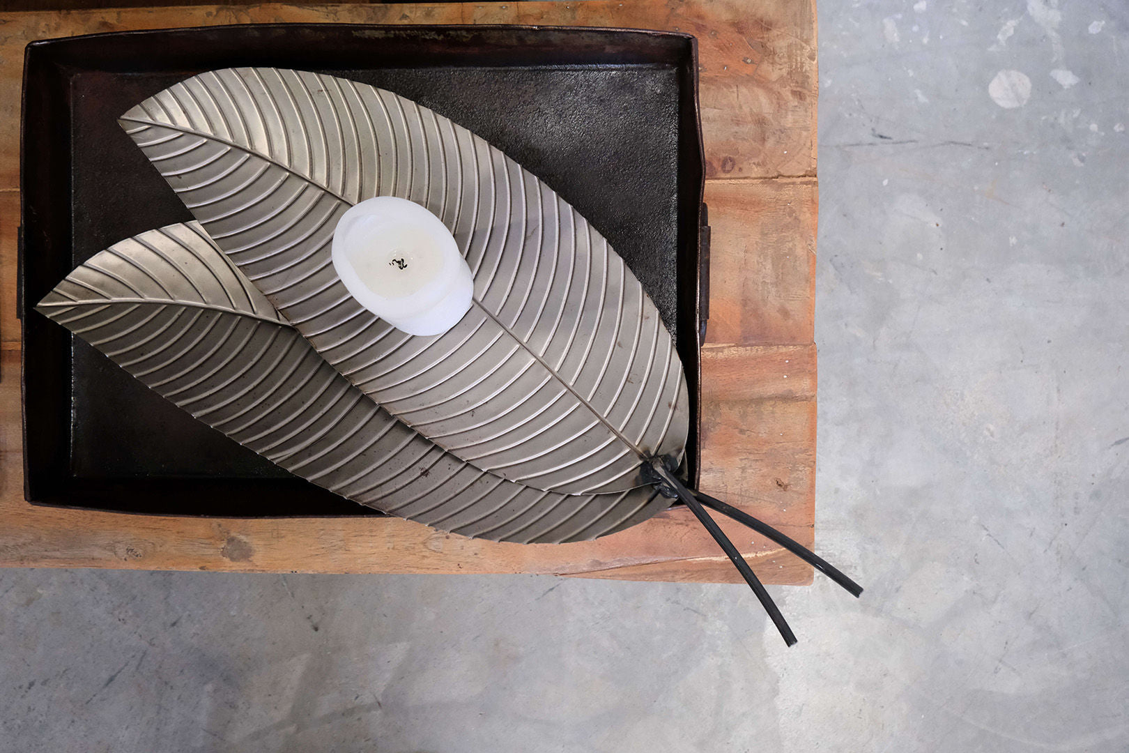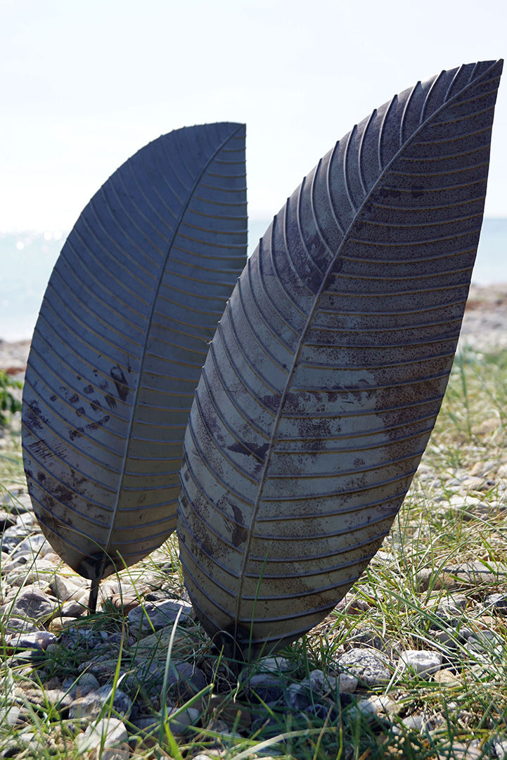 Stort smuk dekorativ paradisblad i metal. Designet er i en skøn kombination af det rå metal og bladets fine lette udstråling. Stil dette paradisblad i stor krukke eksempelvis sammen med evighedsblomster eller hæng blad dekorationen på en væg og opnå et moderne art nouveau udtryk.