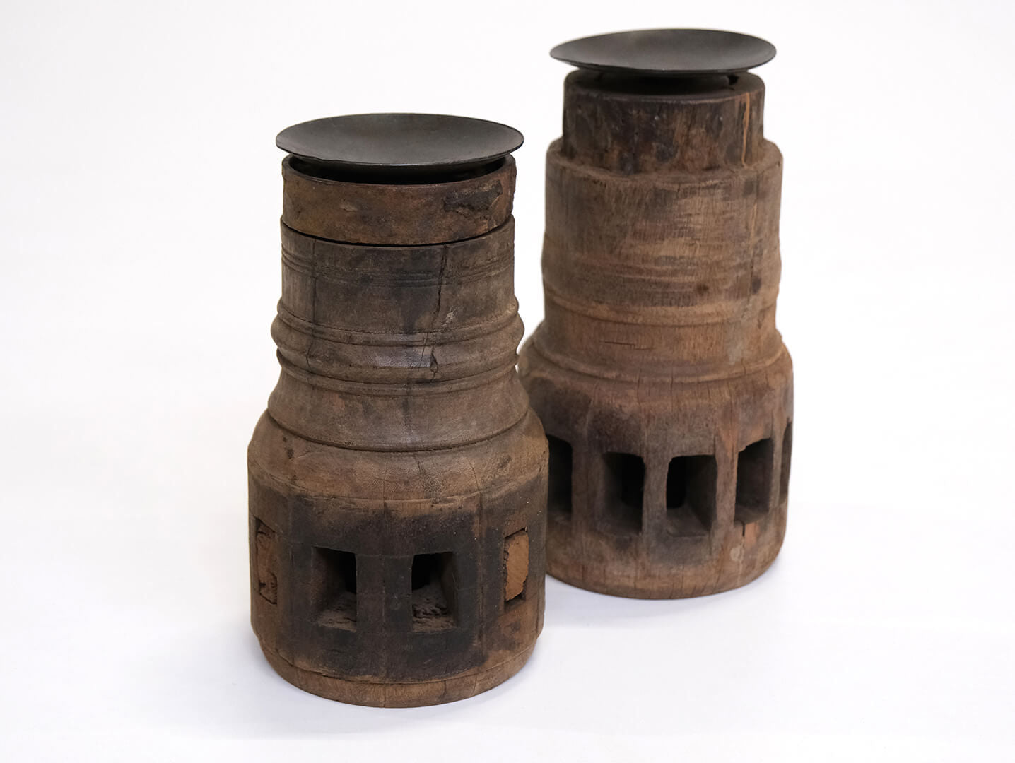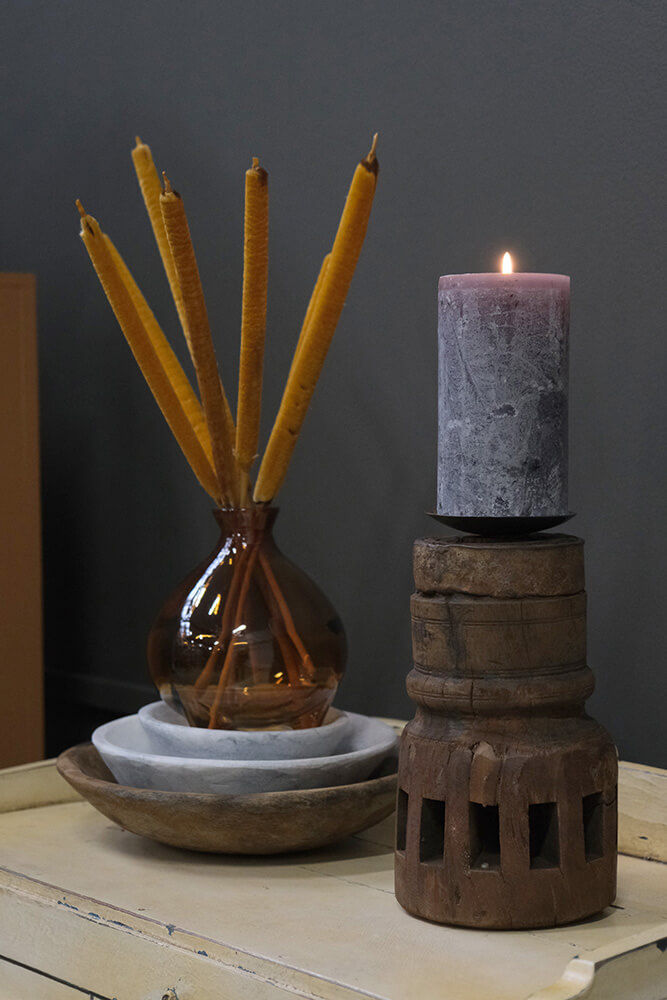 Lys spreder varme, stemning og hygge som intet andet. Derfor fortjener dine lys også en helt særlig lysestage, som komplimenterer og forstærker stemningen. Med disse lysestager lavet af hjulnavene fra gamle træhjul, får dine lys en rustik og charmerende platform, hvorfra de kan sprede varme og hygge til hele rummet. Lysestagerne er upcyclet fra forskellige træhjul og kan derfor variere i størrelse: Højde 20-25 cm. Diameter 12-15 cm.