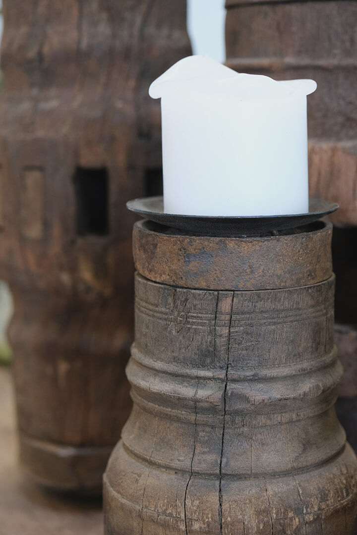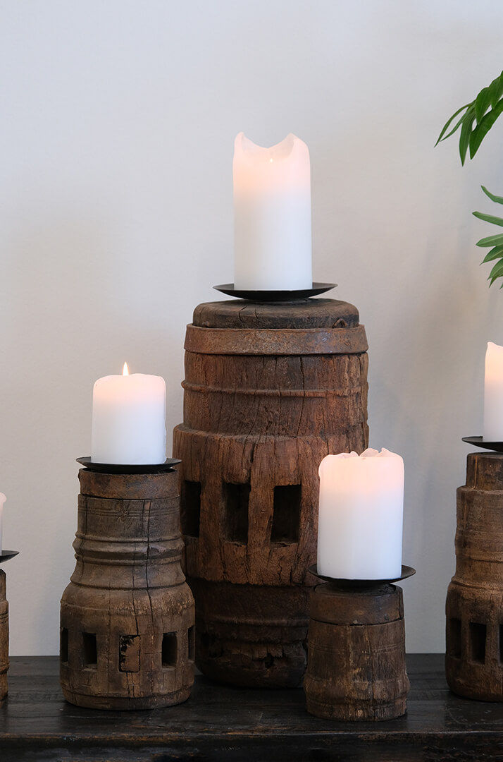 Lys spreder varme, stemning og hygge som intet andet. Derfor fortjener dine lys også en helt særlig lysestage, som komplimenterer og forstærker stemningen. Med disse lysestager lavet af hjulnavene fra gamle træhjul, får dine lys en rustik og charmerende platform, hvorfra de kan sprede varme og hygge til hele rummet. Lysestagerne er upcyclet fra forskellige træhjul og kan derfor variere i størrelse: Højde 10-15 cm. Diameter 8-10 cm.