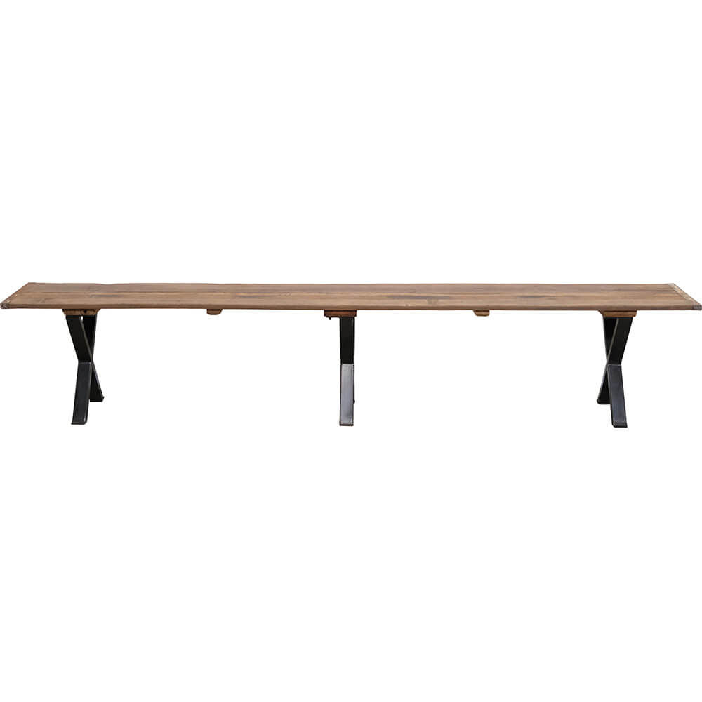 Lang bænk i genbrugstræ med rå jernkanter og understel af jern. Bænken er flot til bordet der passer til (find det i shoppen under SG0334), men er også super skøn alene. Man kan sidde på den eller pynte den med vaser, lamper, bøger og puder, - kun fantasien sætter grænser. Bænken vil med sin størrelse og flotte udtryk sprede en rustik og hyggelig atmosfære. Find et matchende bord under varenummer: SG0334 OBS! Bænken kræver specialtransport.