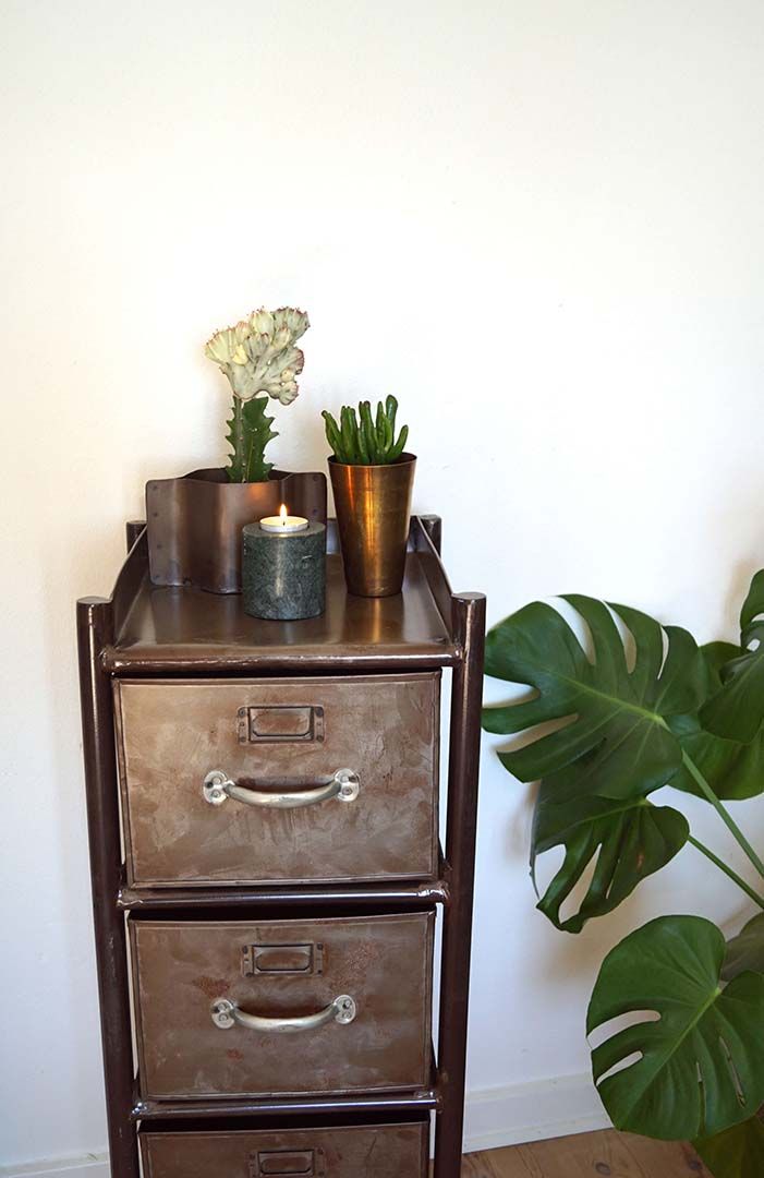Kommode med et råt design og cool finish. Hold styr på indholdet i de tre skuffer ved at benytte de små etiketholdere. Kommoden vil bringe en fin kontrast ind i den klassiske nordiske indretning. Hver skuffe er 18 cm høj, 25 cm bred og 29 cm i dybden, så der er rigtig god opbevaringsplads. I samme serie finder du andre modeller og farver. Søg under Saga i shoppen.